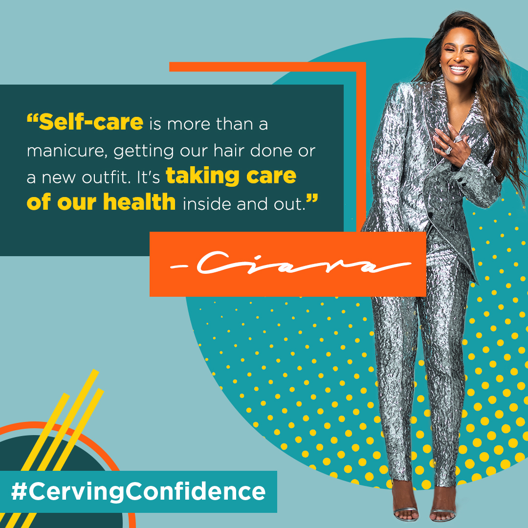 “As Black women, we need to commit to total self-care, and one of the ways we can do that is by taking care of our health inside and out,” says Ciara. “Through the Cerving Confidence initiative, I want to level up conversations about health and address disparities by giving Black women the inspiration and information they need to get a Pap test to screen for cervical cancer.”