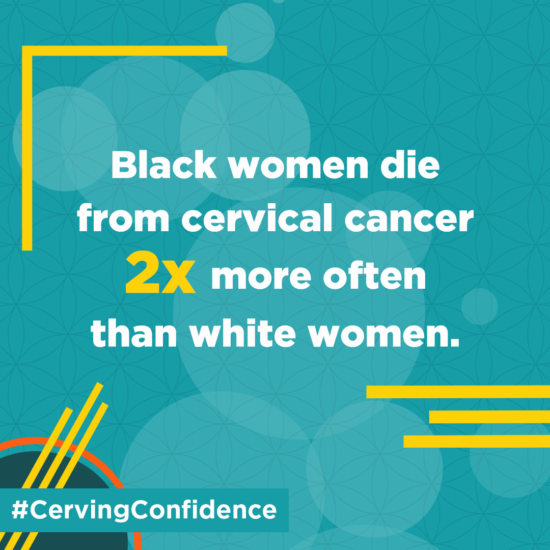 The need for an initiative like Cerving Confidence to reach Black women with life-saving information through a culturally relevant lens is more urgent than ever. Long-time racial, ethnic and socioeconomic inequalities still exist, exacerbating the impact of cervical cancer on Black women. Research shows that Black women in the U.S. are twice as likely to die from cervical cancer than white women,1 and they are more likely to be diagnosed with advanced cervical cancer than any other racial group,2-3 which can lead to worse outcomes. COVID-19 likely has widened these disparities since many women may have postponed their well-woman exams due to the pandemic. In fact, even as more people are vaccinated against COVID-19, many experts fear the delay in screenings will result in more undiagnosed cancers – including cervical cancers. In a time when cervical cancer can be largely prevented, this is unacceptable.