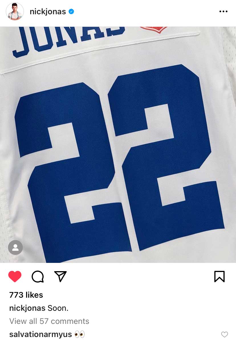 FRISCO, Texas (Oct. 25, 2022) — Grammy Award-nominated and American Music Award-winning Jonas Brothers will perform live at AT&T Stadium during the nationally televised halftime show of the Dallas Cowboys game on FOX against the New York Giants on Thanksgiving Day. The Jonas Brothers teased the announcement to fans on the brothers’ individual social media platforms by each posting a blue number on a white, fabric-like background. Appearing one by one, the numbers: 11, 24, and 22 remained a mystery until the trio later connected the dots for fans to share the big news in collaboration with the Cowboys, NFL, and The Salvation Army. The joint announcement post revealed the three numbers on the backs of three Cowboys football jerseys, each emblazoned with JONAS and The Salvation Army logo, and side by side, indicate the Thanksgiving Day performance date.