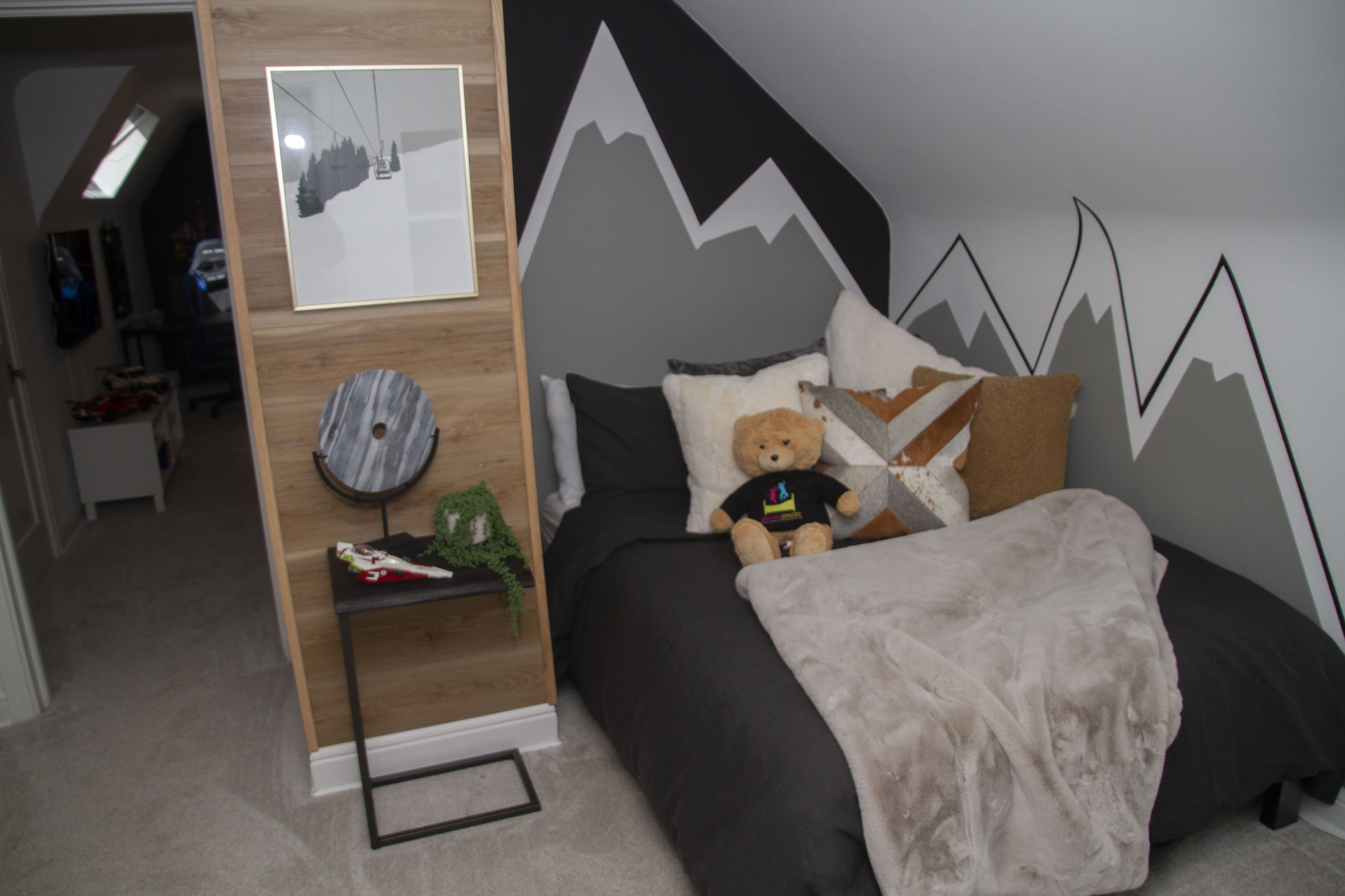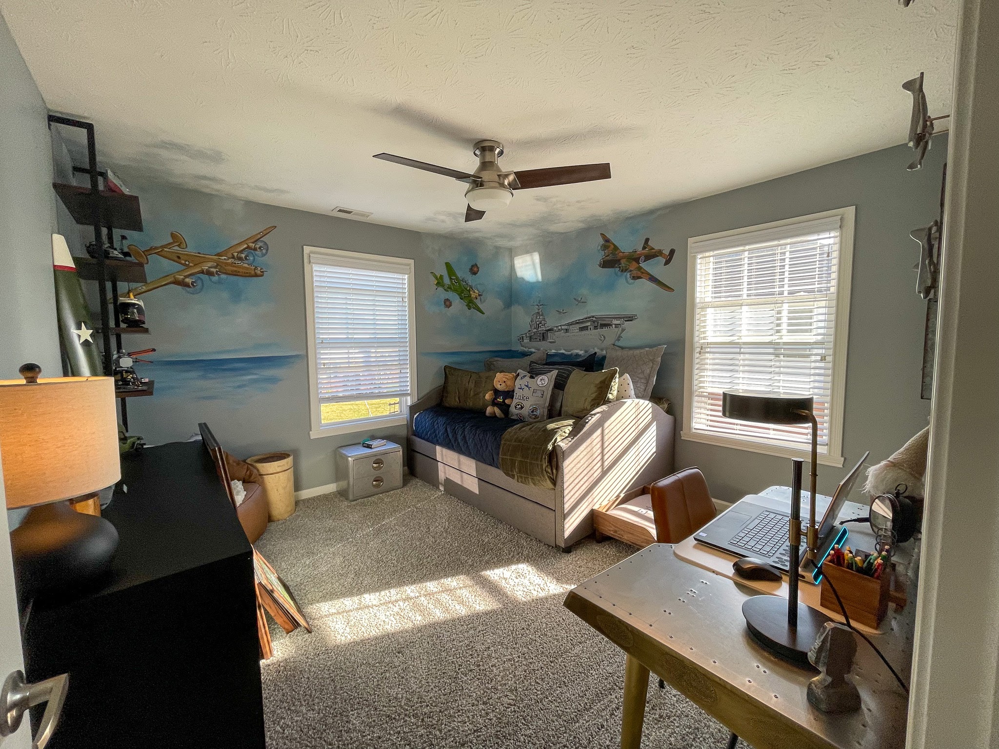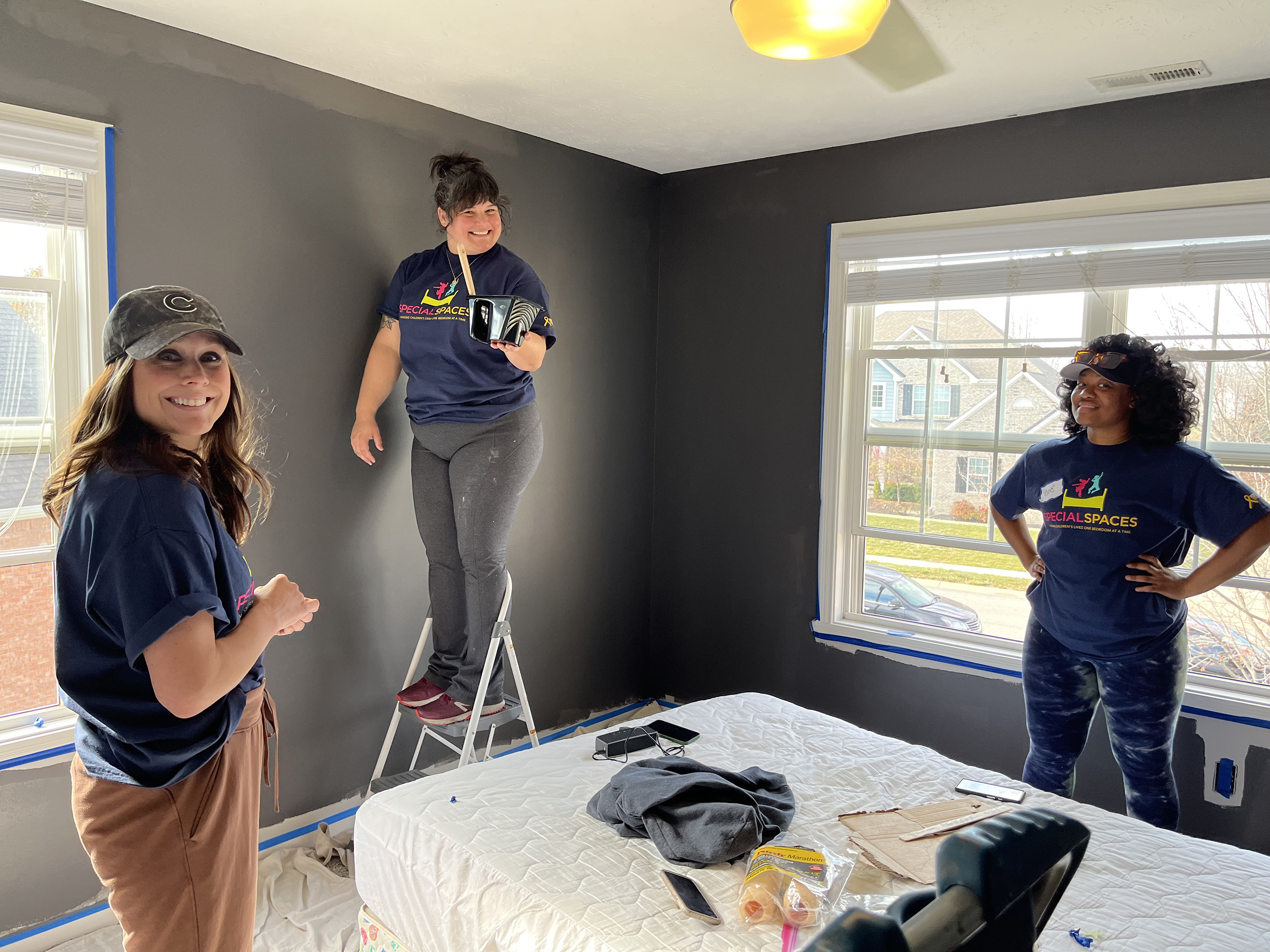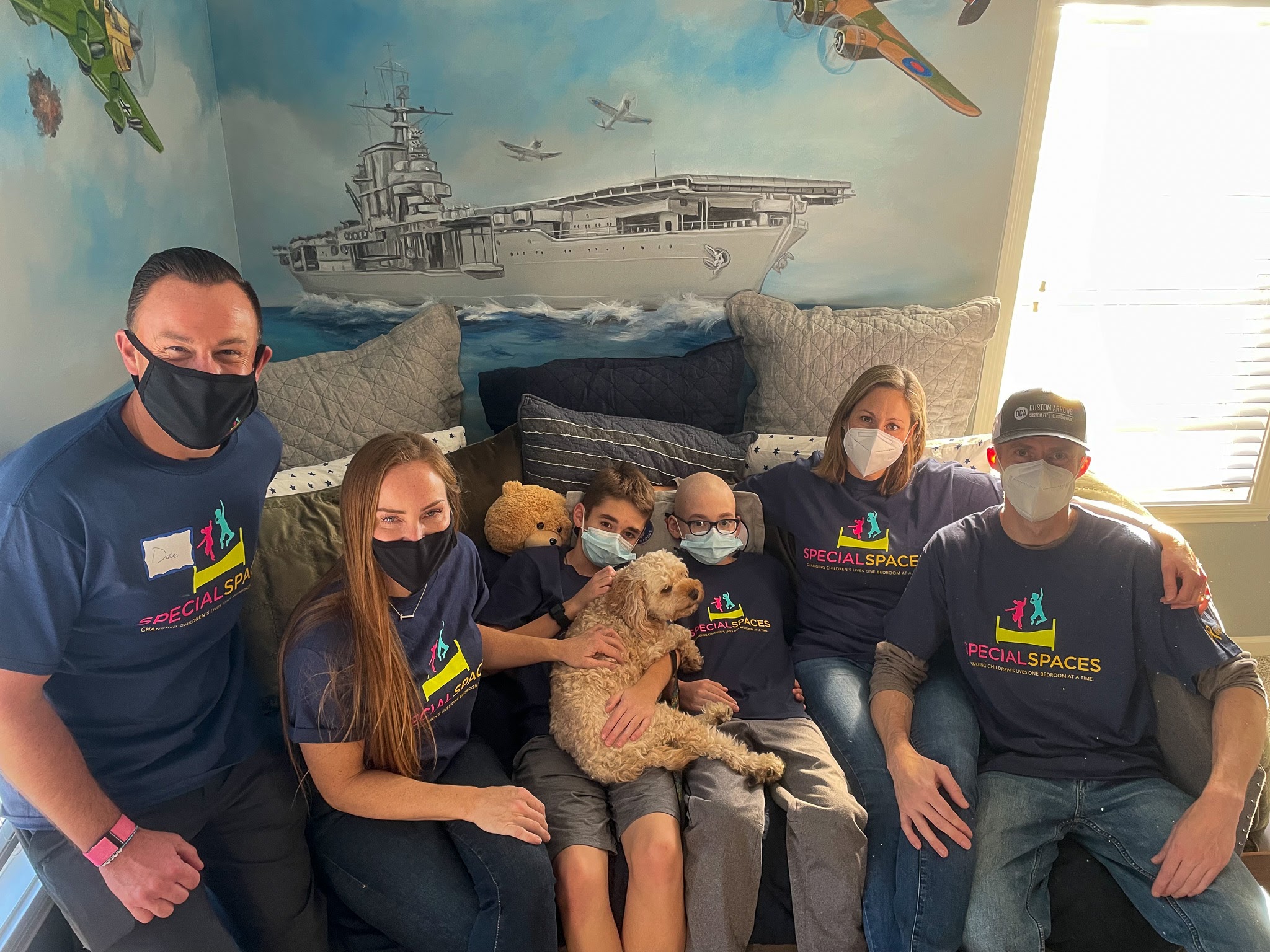Starsiak Hawk consulted with the Special Spaces design team to make Luke’s vision of a WWII fighter plane-themed room a reality. Alongside dedicated volunteers from Northwestern Mutual’s Indianapolis-based office, Starsiak Hawk and Special Spaces surprised Luke with a freshly painted mural, new furniture, and an aviator wing desk.