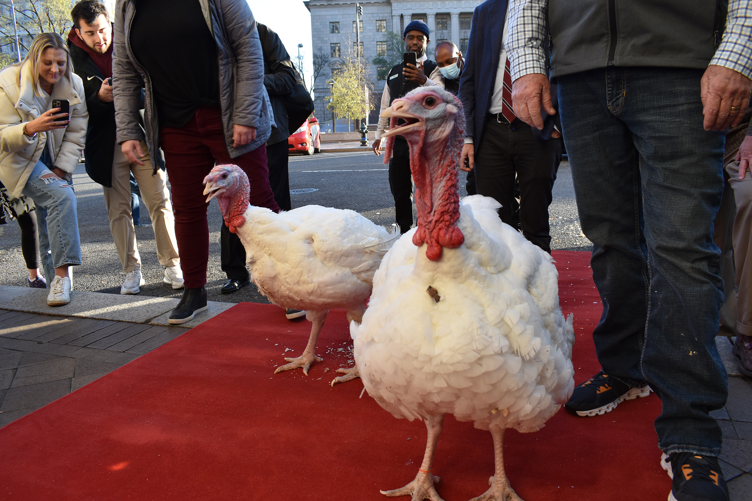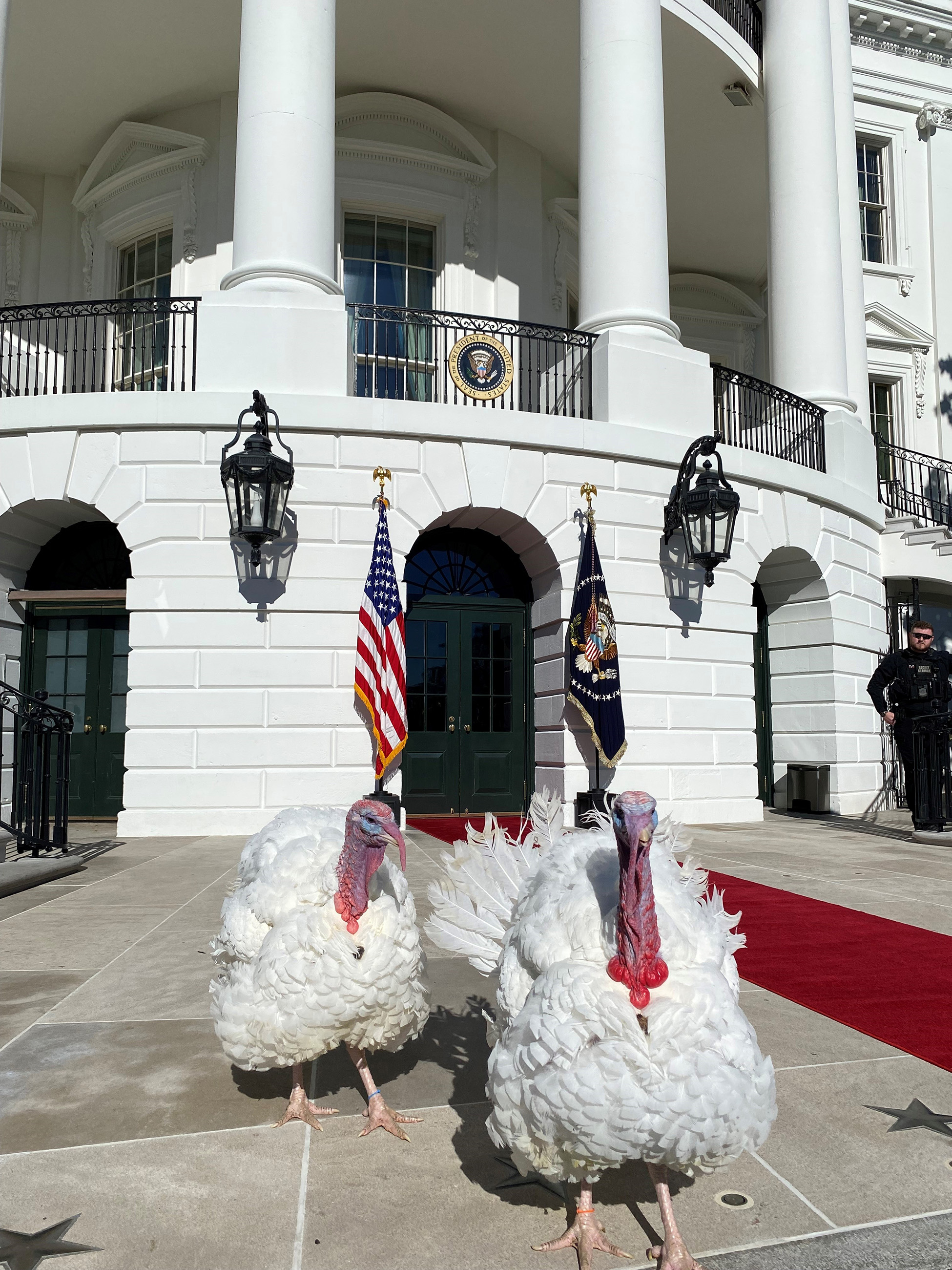 The 2022 National Thanksgiving Turkey and alternate were raised in Monroe, North Carolina, by NTF Chairman Ronnie Parker. Parker is a 44-year veteran of the turkey industry and serves as General Manager of Circle S Ranch. Parker was joined in presenting the National Thanksgiving Turkey by Lexie Starnes, a 4th generation member of the Starnes family involved in the operation of Circle S Ranch. While in Washington, D.C., Chocolate and Chip stayed at the historic Willard InterContinental. Following their visit to the White House, the turkeys will retire to NC State University where they will be under the experienced care of veterinarians, faculty and students within the Prestage Department of Poultry Science.