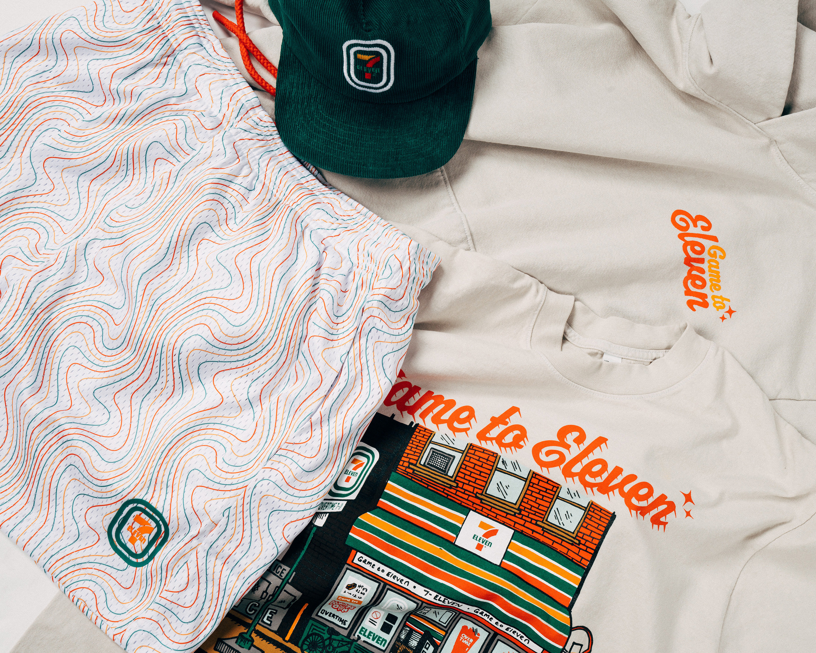 The collection, Overtime x 7-Eleven curated by Easy Otabor, is inspired by “Game to Eleven,” the phrase popularized by pick-up basketball. The streetwear-meets-sportswear designs feature fan-favorite products like Slurpee® drinks and Big Gulp® fountain beverages subtly intertwined with basketball themes. Included in the collection are 7-Eleven and Speedway-branded hoodies, T-shirts, hats and mesh shorts.