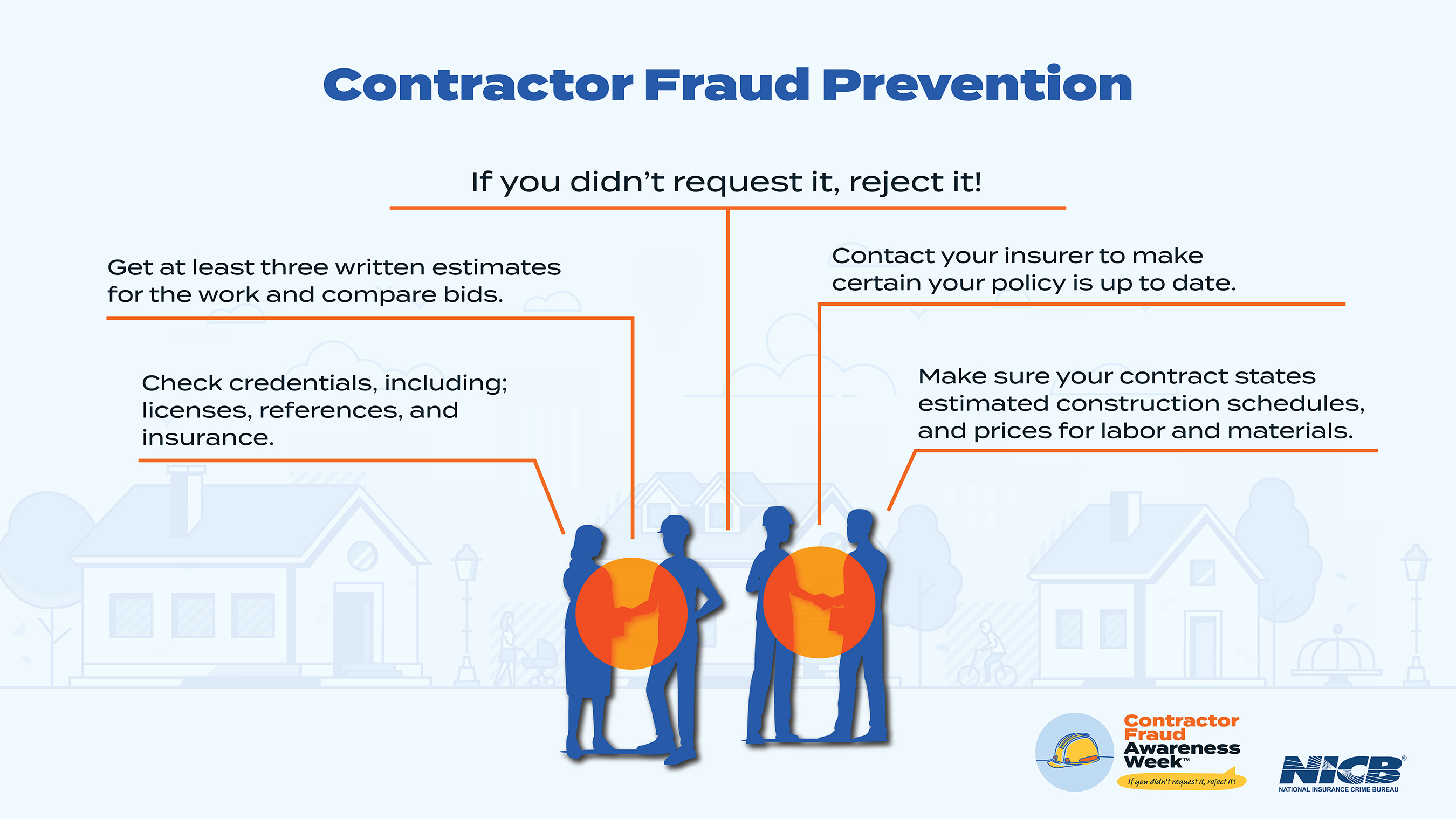 NICB created Contractor Fraud Awareness Week in 2021 to highlight the growing problem of contractors and vendors that take advantage of disaster victims in the aftermath of catastrophes.