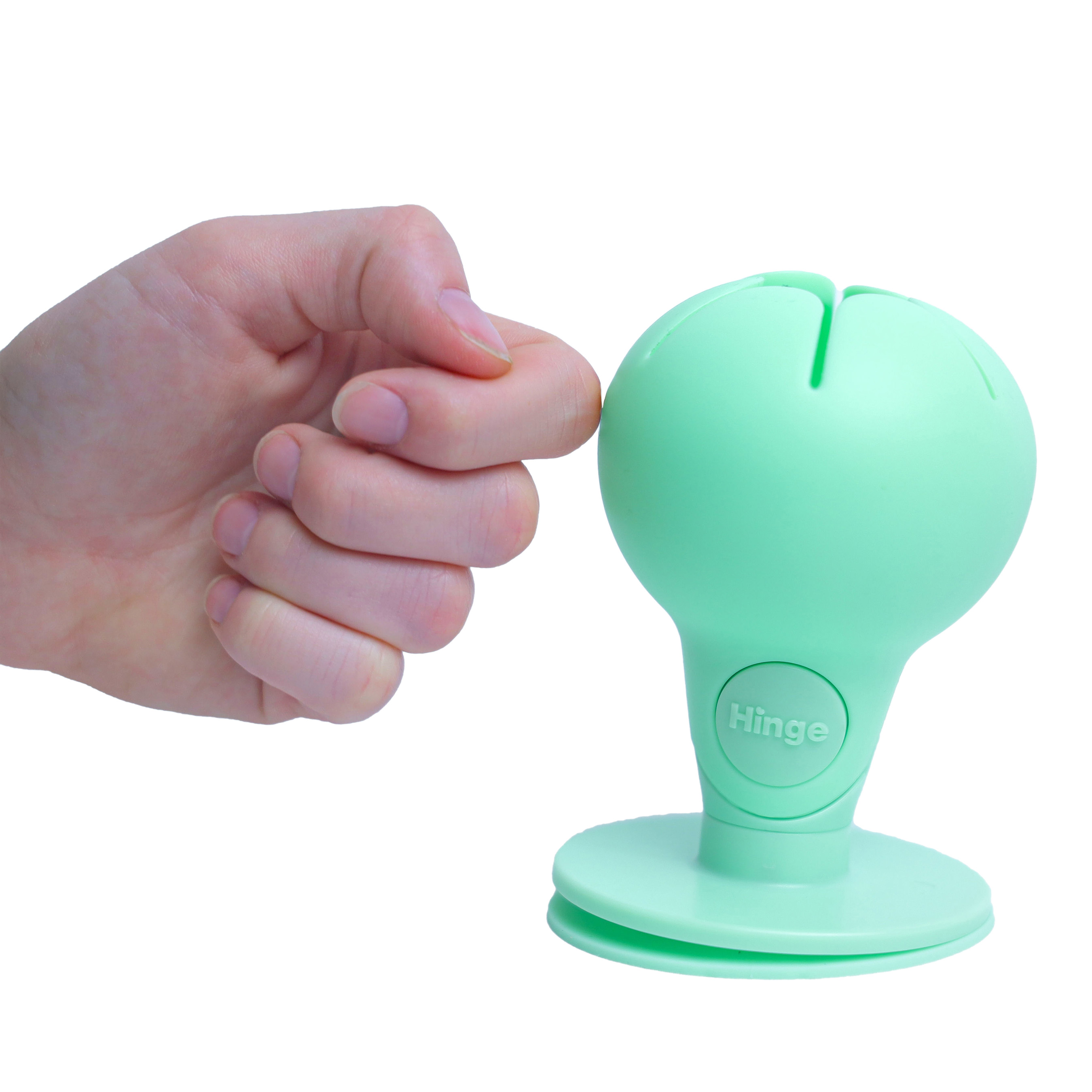 Unlike with suction, Smartgrip does not need to be pressed down to work, nor does it need to be peeled off to lift. Simply set the Tweexy Hinge down, and the Smartgrip instantly grips. When knocked into from the side, Smartgrip holds firm to a smooth flat surface. And when you need to pick it up, it lifts naturally and without resistance. The magic of Smartgrip is that it works in the background, gripping and releasing exactly when you need it to. There are no buttons to push or levers to pull; it just works.
