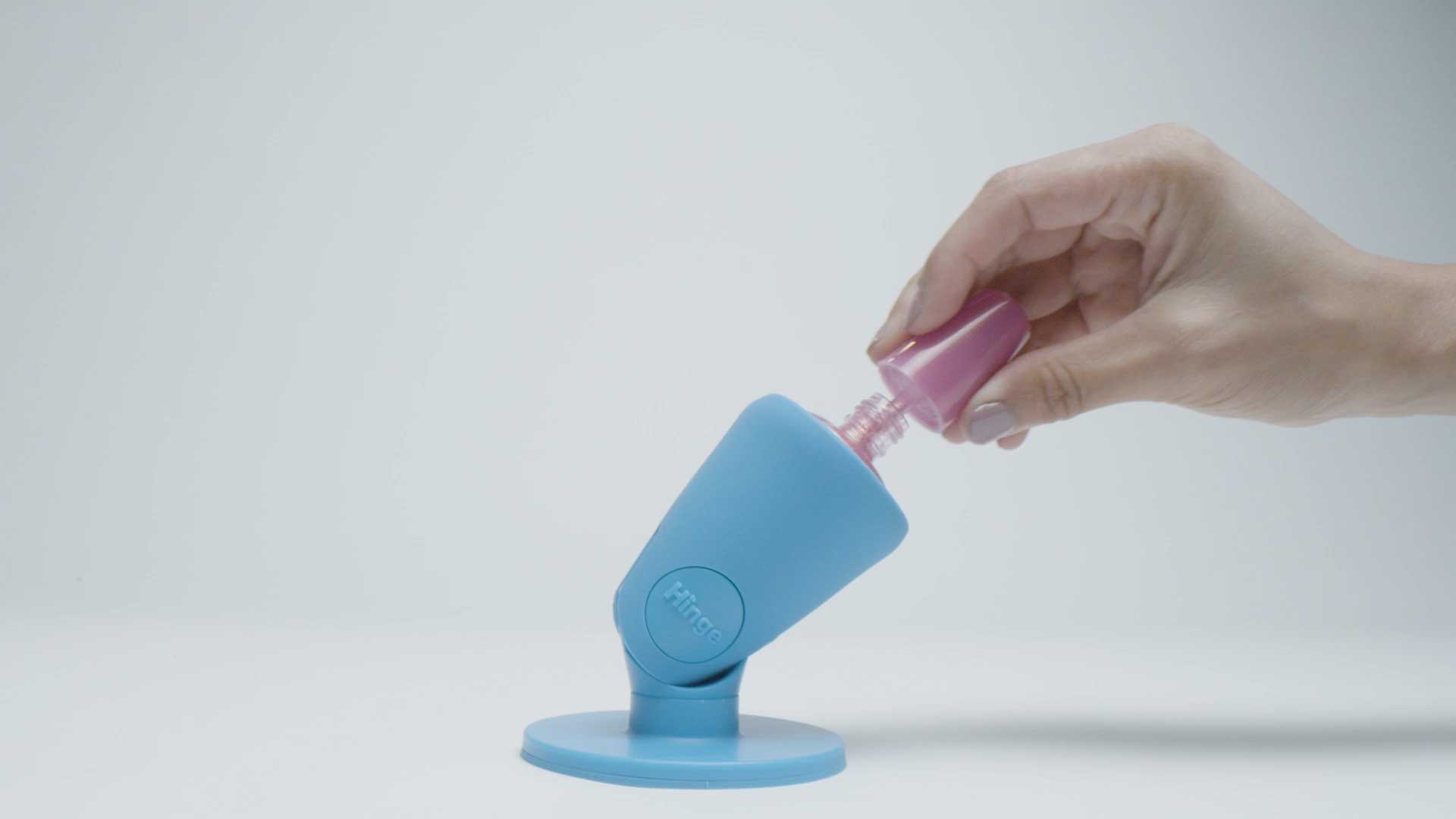 Like the original wearable Tweexy silicone ring (www.tweexy.com), Tweexy Hinge allows the polisher to use all their favorite nail polish brands, regardless of their various shapes, sizes, and capacities. Co-Inventors Elizabeth Boyle and Mark Miclette designed the Tweexy Hinge so it would work vertically in an upright position or at a 45-degree angle. The person polishing can also adjust the bottle angle securely within the Hinge receptacle. Circular, square, quarter moon, oval, rectangular, triangle, and other jewel shapes all hold well in the Tweexy Hinge.