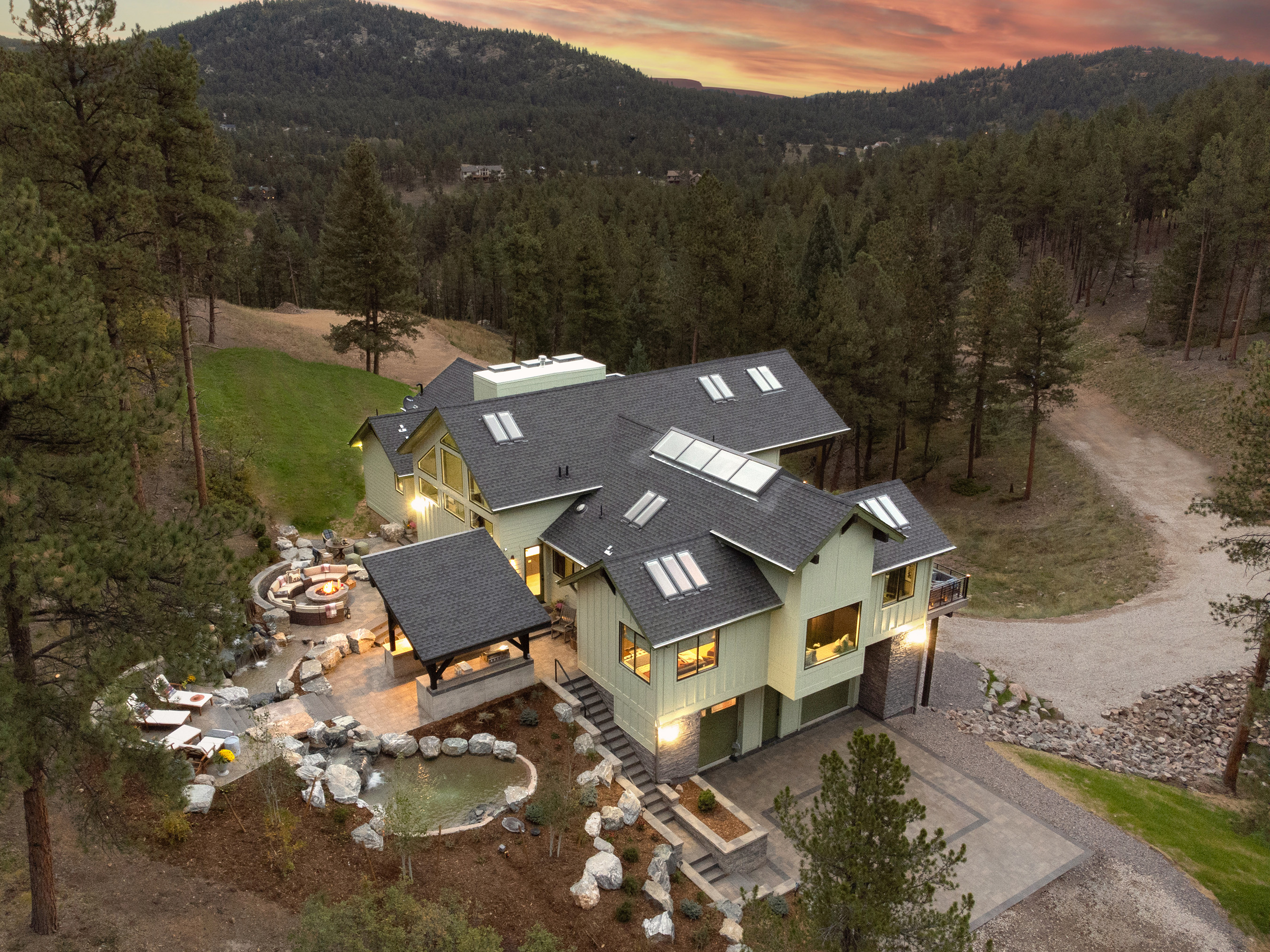 The three-bedroom, three-bathroom home sits at approximately 4,360 square feet, resting on a secluded road against the backdrop of the beautiful Rocky Mountains. Leaning into the outdoor lifestyle of Morrison, the home provides an elevated take on rugged design with sophisticated luxury that greets visitors upon entry. Highlights of the home include the classically modern kitchen featuring sleek appliances, a spacious pantry, a wet bar and a formal dining space. Filled with natural light from expansive windows, the open floor plan leads into the living room. The main bedroom boasts a stunning deck, walk-in closet and en-suite bathroom, and the two spacious guest suites are each designed in a unique color palette with designated seating areas in each. The home’s outdoor space pays homage to Colorado’s natural beauty with various outdoor seating options, a full outdoor kitchen, as well as a cozy firepit off a waterfall and natural stone bridge, in addition to a private pergola placed right in the middle of nature.