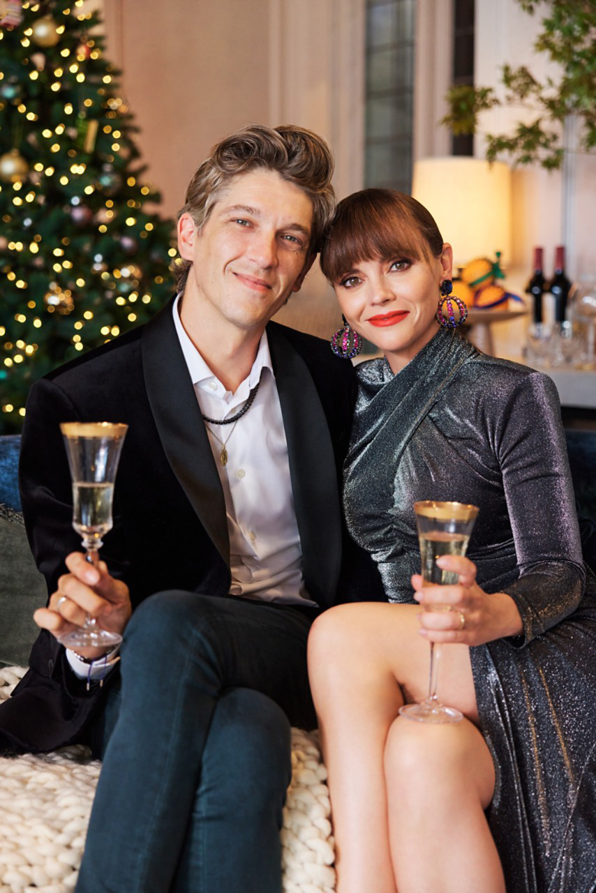 The campaign invites us into the home of Leslie Odom Jr. along with his wife, actress Nicolette Robinson, and their two children as they unwrap gifts, share a warm family meal, and make long-lasting memories together. Showing us their love of getting dressed for the holidays, Christina Ricci makes a fashionable statement alongside her husband, hair stylist Mark Hampton, as they get glam for the holiday party season together and raise a glass in celebration.