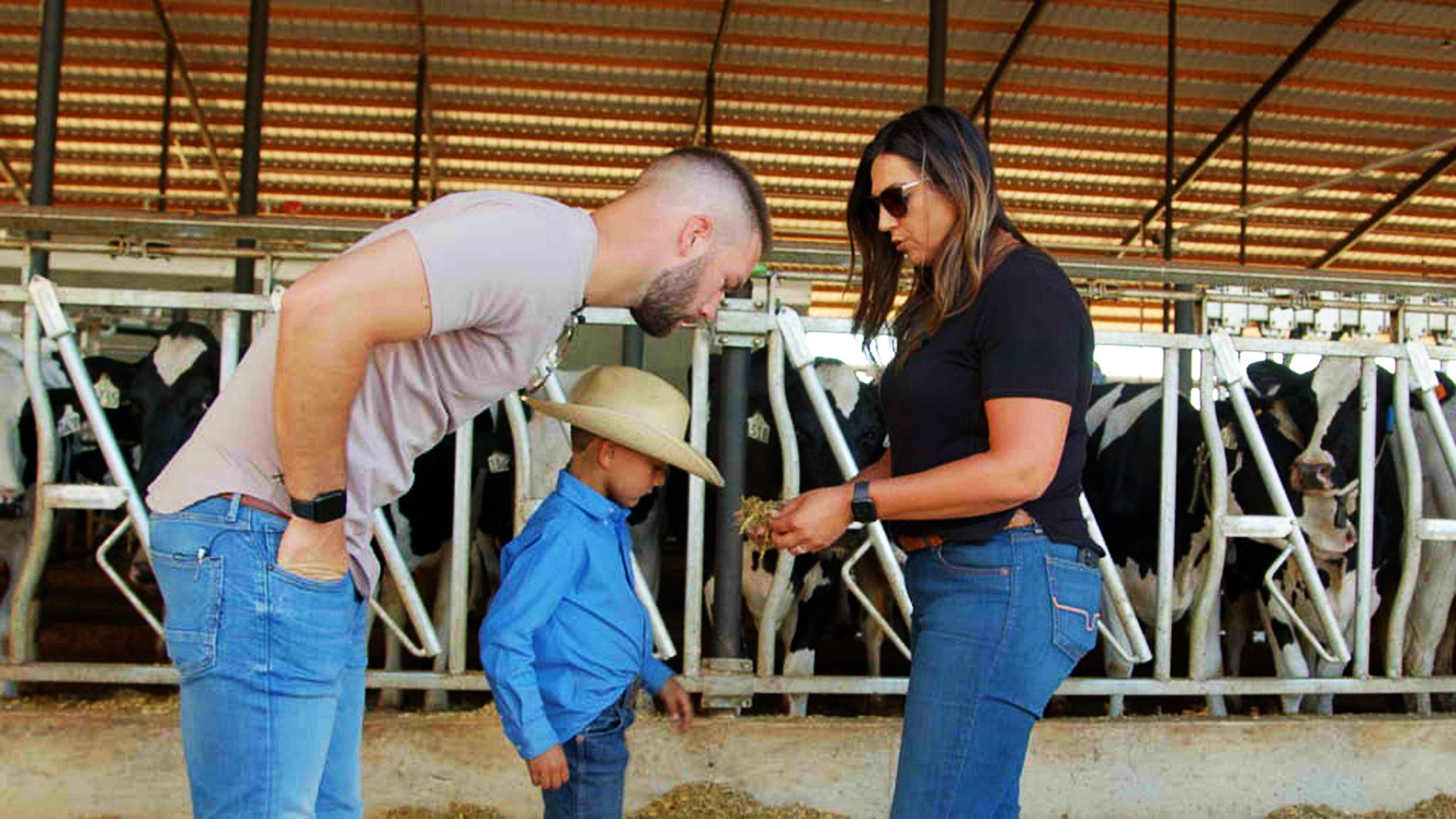 Megan Silva and Jordan Mazur walk the grounds of Frank N. Rocha Dairy Farm to discuss how quality feed is turned into high-quality, nutritious real milk and dairy products.