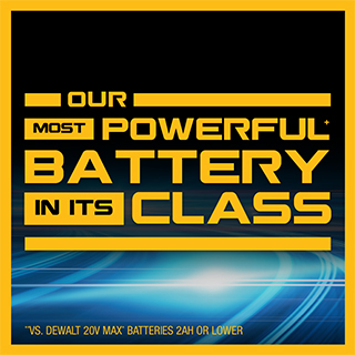 – DEWALT’s most efficient and most powerful battery in its class - class defined as DEWALT XR® Batteries 5Ah or less; not in application