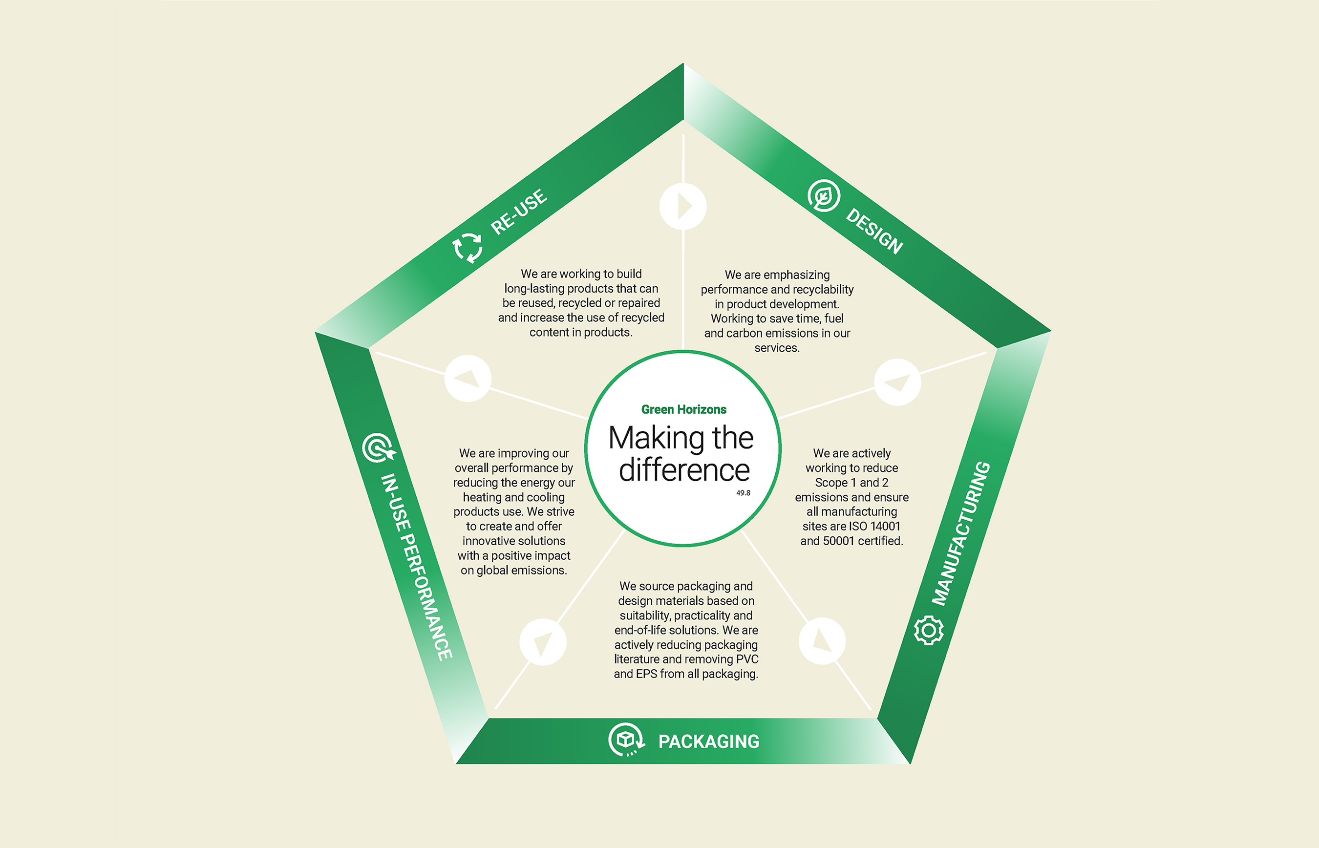 4 Green Horizons is Resideo’s internal blueprint for sustainable product innovation, designed to lay the foundation for the development and evaluation of Resideo products both presently and in the long-term.