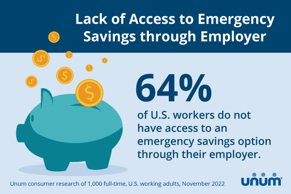 Nearly two in three (64%) people don’t have access to emergency savings through their employer.