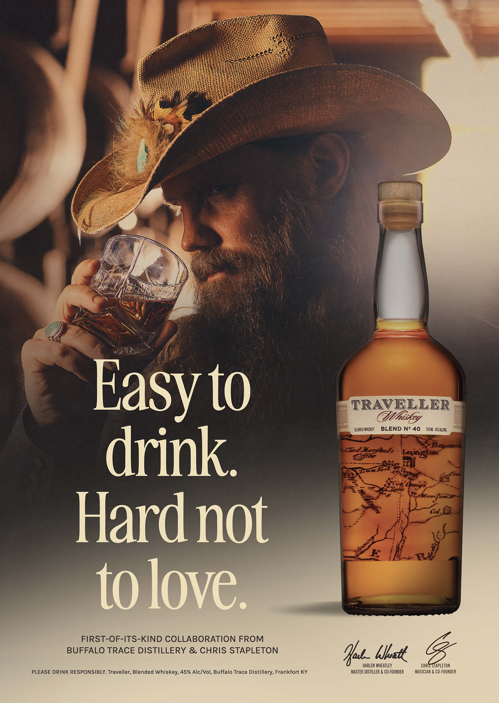 Of the collaboration, Stapleton shared, "Partnering with Buffalo Trace Distillery and Harlen Wheatley feels like a bucket list scenario for me. Some things just make total sense – and this is definitely one of those things. Bottles from barrels that Harlen has cared for have been with us for every note we've ever recorded, backstage before shows and in all the moments we've celebrated along the way. I believe what we've achieved with Traveller Whiskey not only represents our shared history but also a common artistic vision and uncompromising standards of taste. I couldn't be prouder of what we've made."