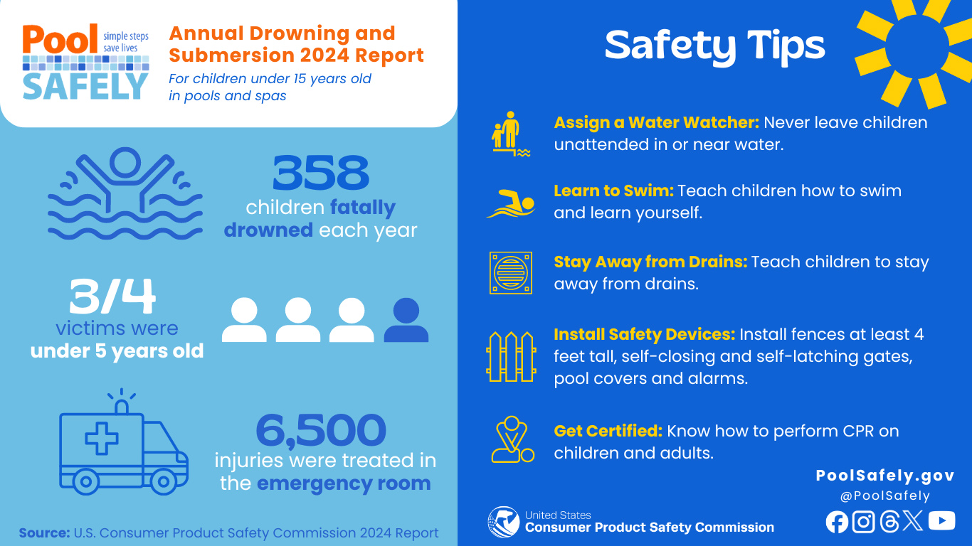 You can read the full CPSC drowning and entrapment reports by visiting PoolSafely.gov.