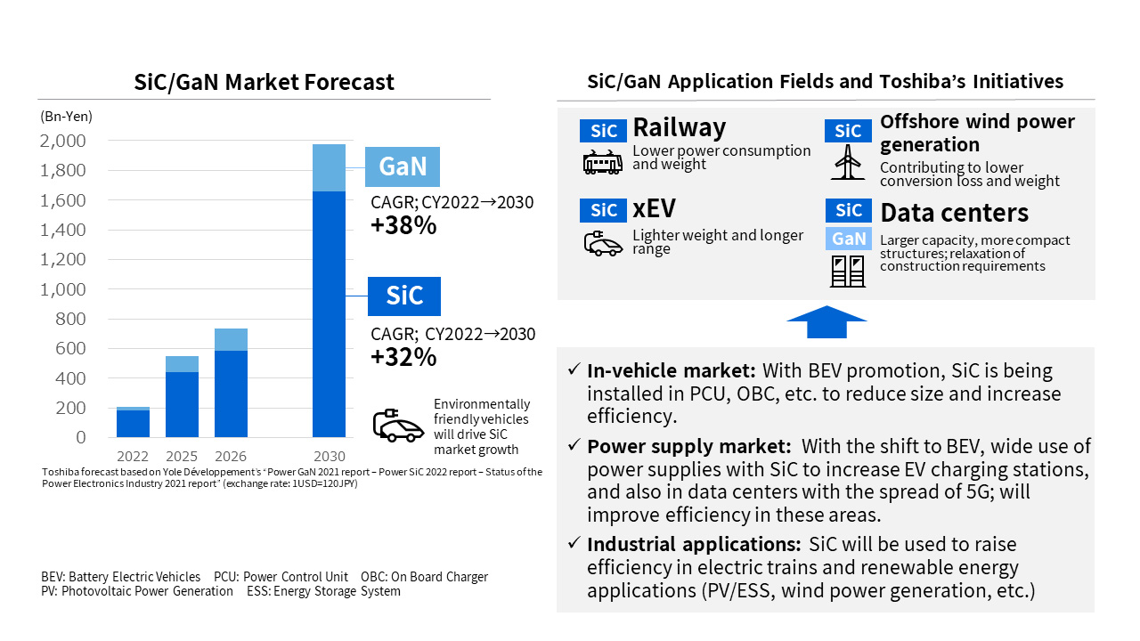 Promotion of carbon neutrality is bringing next-generation power semiconductors into an increasing range of applications.