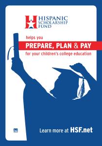 Fundado en 1975, Hispanic Scholarship Fund proporciona becas y servicios de apoyo a estudiantes latinos lo mismo que servicios de apoyo. HSF busca dar a los estudiantes todas las herramientas necesarias para su ingreso a la universidad, obtener un título universitario, a que ingresen a una profesión, a sobresalir, a que ayuden a dirigir a nuestra nación hacia un futuro más promisorio y a que dirijan a las futuras generaciones. Como la organización sin fines de lucro más grande que impulsa la educación superior entre los hispano-americanos, HSF ha otorgado más de $470 millones de dólares en becas, provee de una gran variedad de programas adicionales a estudiantes, becados de HSF y a sus familiares. HSF se esfuerza aún más para que la educación universitaria tenga la más alta prioridad entre las familias hispanas del país, movilizando a la comunidad para alcanzar dicho objetivo – a cada individuo, de por vida y de toda forma posible en la que él o ella puedan realizarse. Para obtener mayores informes sobre Hispanic Scholarship Fund, favor de visitar: HSF.net.