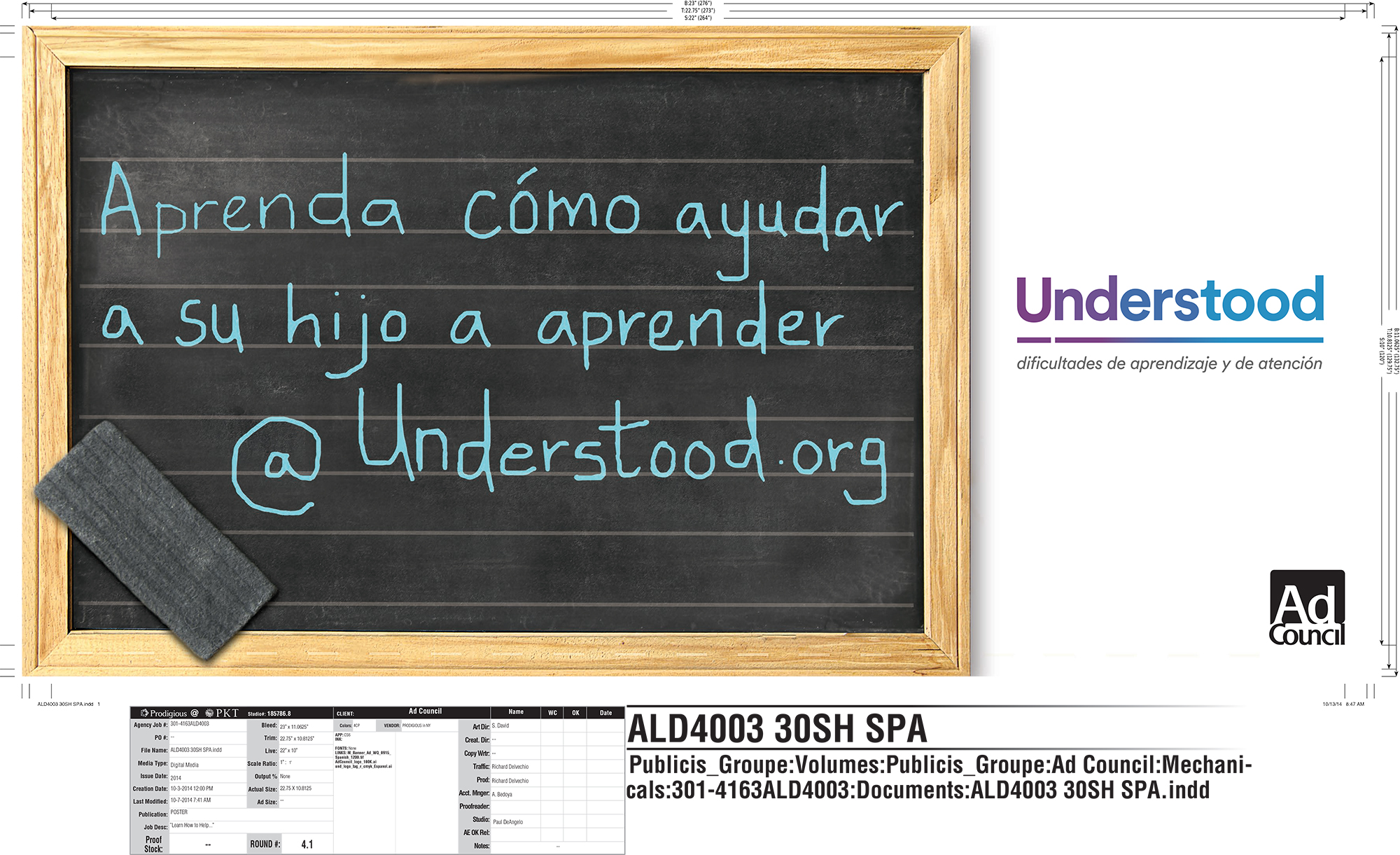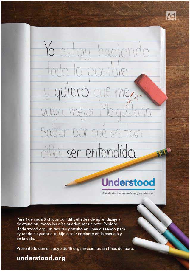 “En nuestro trabajo siempre procuramos mostrar empatía y comprensión”, afirmó Rob Feakins, presidente y director creativo de Publicis Kaplan Thaler. “Esta campaña pone de relieve la importancia de las dificultades de aprendizaje y atención que afectan a uno de cada cinco chicos logrando que las personas se relacionen y la entiendan instantáneamente. Es un placer asociarnos con el Ad Council y Understood.org para ayudar a marcar una diferencia en las vidas de muchas familias”.
