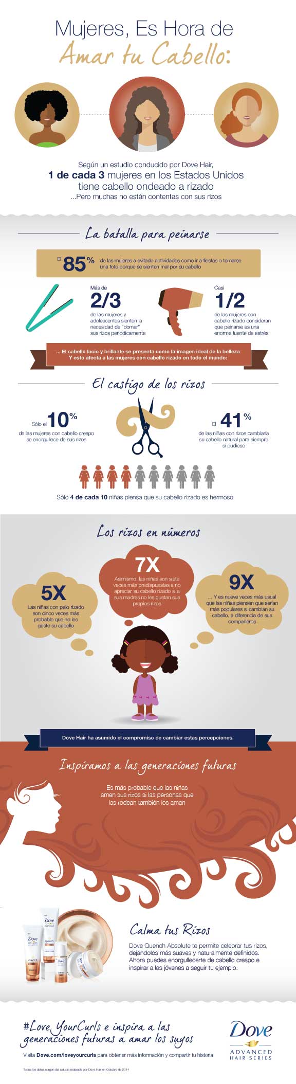La campaña Love Your Curls de Dove Hair coincide con el lanzamiento de la nueva línea de productos nutritivos para el cabello rizado, Dove Quench Absolute. Mira el video Love Your Curls s e inspírate a compartir tu cuento de amor con tus rizos en Dove.com/loveyourcurls. #LoveYourCurls y comparte tu historia con el mundo en Facebook, Twitter e Instagram.