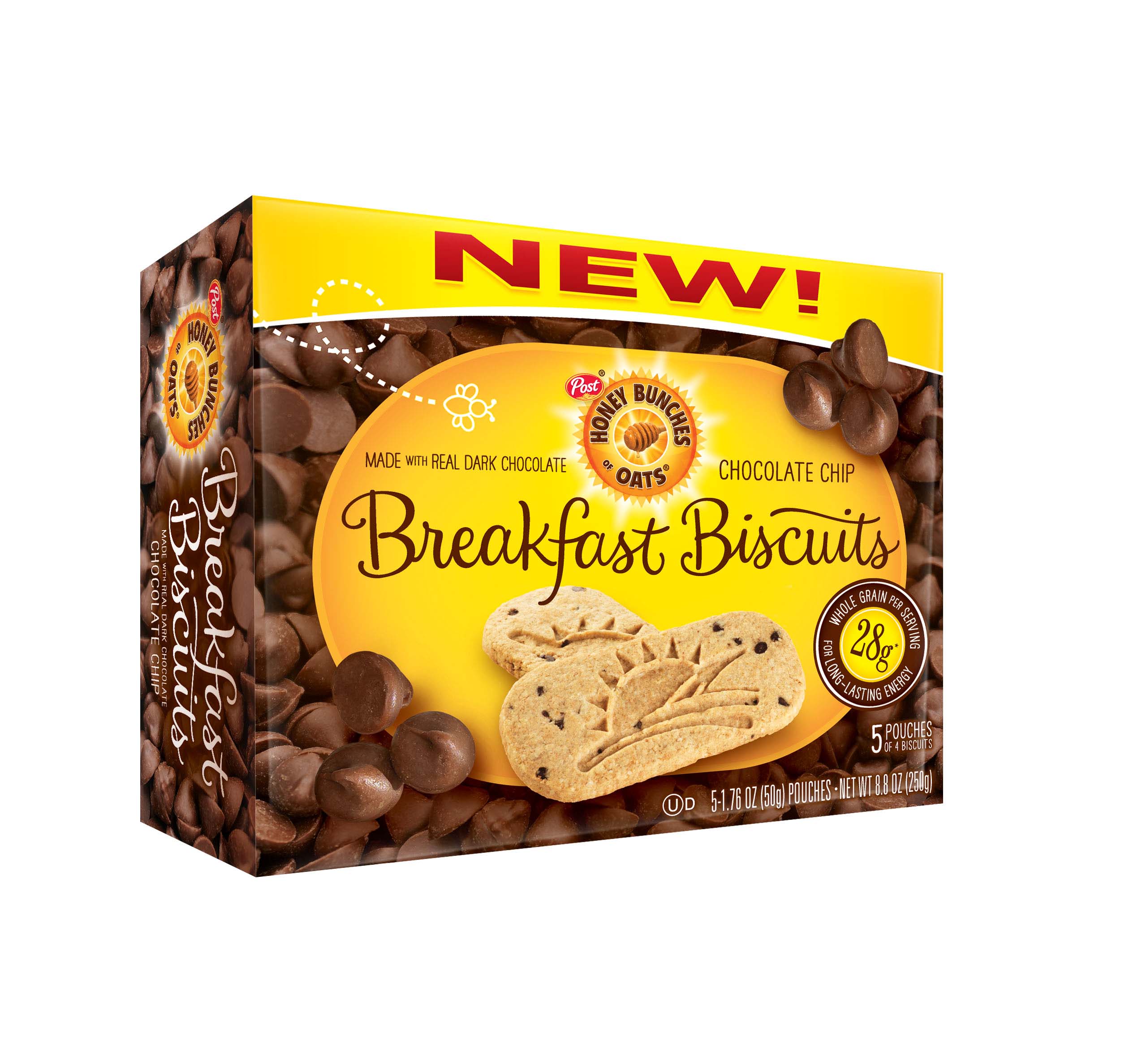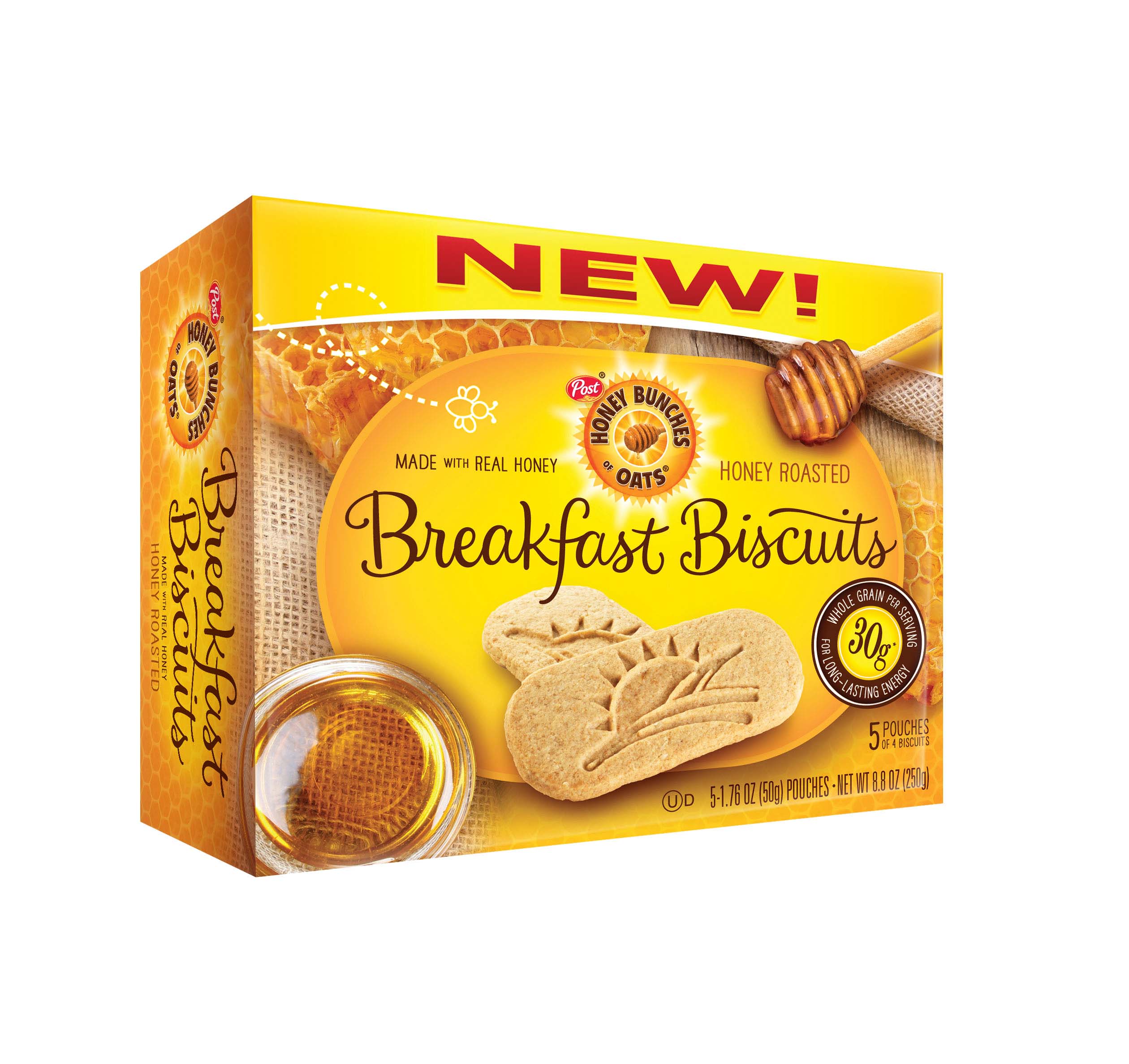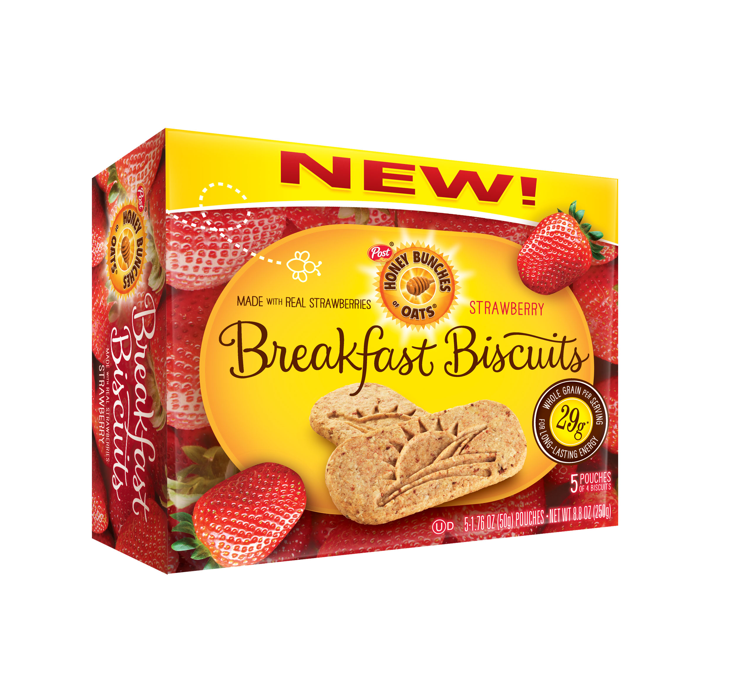 Las nuevazas galletitas Honey Bunches of Oats Breakfast Biscuits, están disponibles en tres sabores deliciosos: Honey Roasted (con sabor a miel), Strawberry (con sabor a fresa) y Chocolate Chip (chispas de chocolate). Cada paquete individual de cuatro galletitas crujientes proporciona más del 55 por ciento de los requerimientos diarios de granos integrales, 4 gramos de fibra y 5 gramos de proteína. Honey Bunches of Oats Breakfast Biscuits ofrecen una nueva opción para el desayuno que es nutritiva y conveniente.
