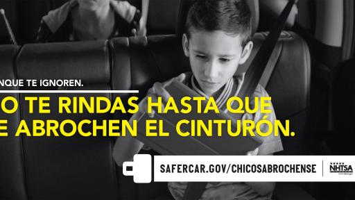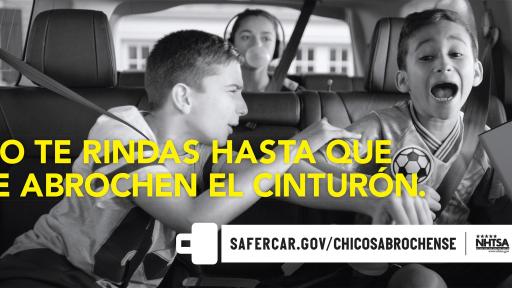 La Administración Nacional de Seguridad del Tráfico en las Carreteras (NHTSA) anunció hoy su primera campaña nacional de publicidad dirigida a los padres de niños de 8 a 14 años para asegurarse de que sus hijos estén consistente y correctamente abrochados cada vez que el vehículo esté en movimiento.