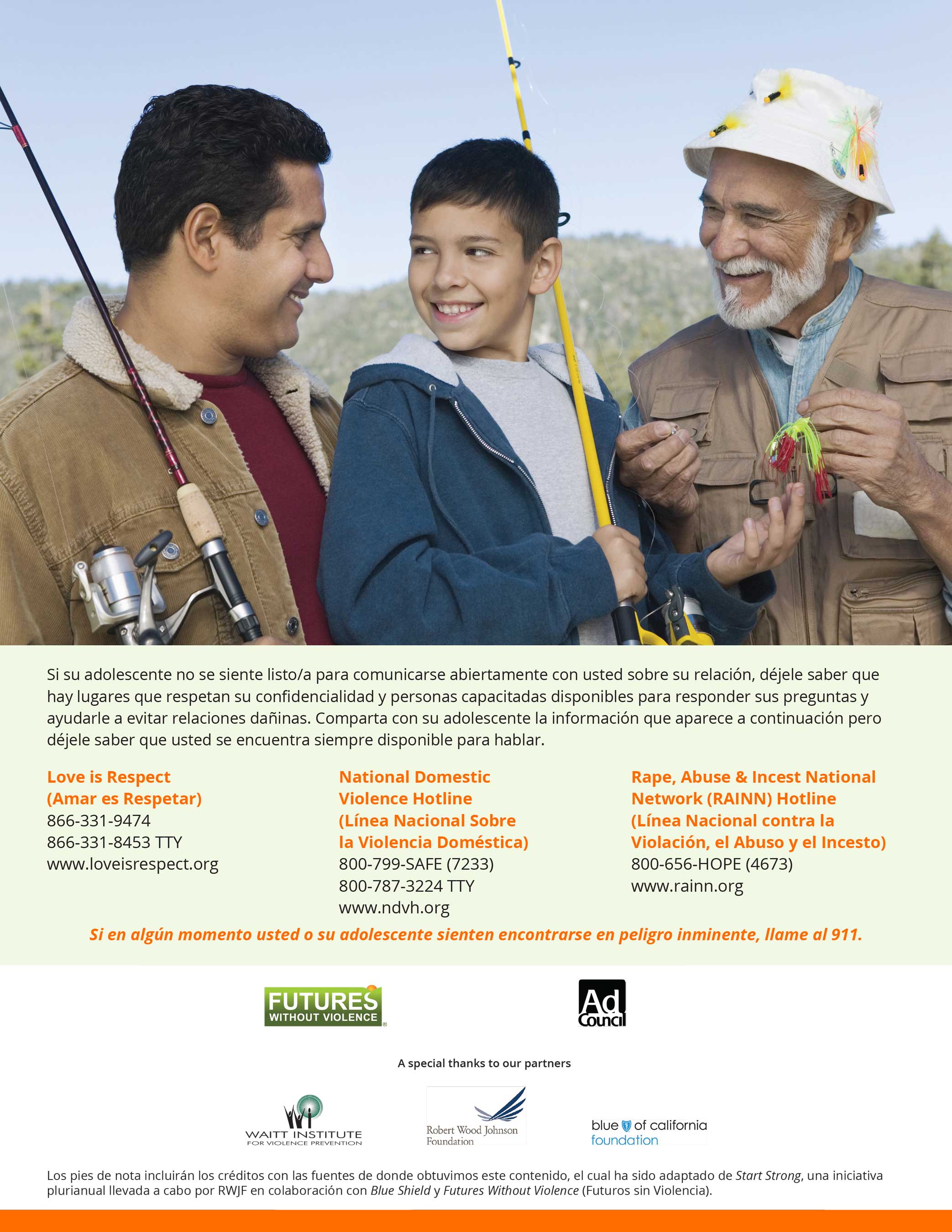 “El tema de la violencia doméstica se vuelve cada vez más parte del diálogo nacional”, señala la presidenta y directora ejecutiva del Ad Council, Lisa Sherman. “Queremos transformar las historias negativas de la prensa en algo más productivo y poderoso. Al dar consejos a los padres y mentores para que sepan cómo hablar con sus hijos y otros niños sobre las relaciones saludables, tratamos de cambiar la forma en que los niños piensan sobre cómo se trata a las mujeres. Los hombres tienen un rol clave y esta campaña les da herramientas para que sean motores del cambio”.