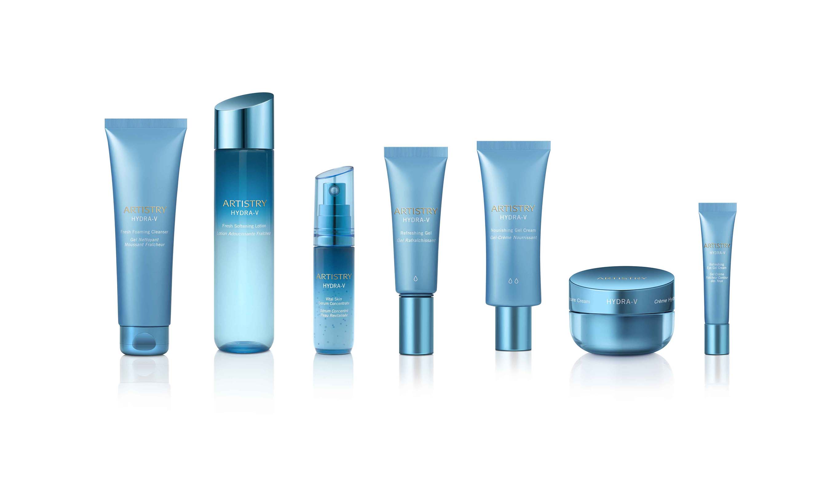 La colección Artistry Hydra-V™ abarca siete productos, que pueden personalizarse en un régimen para refrescar, rellenar y revitalizar la piel. Luego de seguir cuatro pasos, la piel se ve y se siente más lisa, más suave y más flexible.