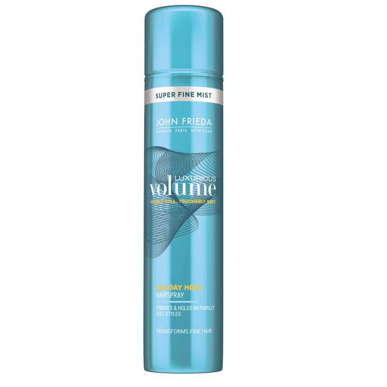 - El toque final — un ligero rocío con John Frieda Luxurious Volume All-Day Hold Hairspray — agregó brillo y fijó el look para evitar que se aplastara.