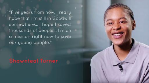 Con el espíritu navideño de dar y compartir, Goodwill pide a todos hacer una gran diferencia contribuyendo monetariamente o donando sus artículos al Goodwill más cercano. El regalo que usted aporte y las donaciones son utilizadas para ayudar a financiar servicios de Goodwill de colocación de empleo, entrenamiento en persona o virtual, entrenamiento laboral y otros servicios comunitarios, tales como orientación profesional, clases de inglés, educación financiera y credenciales profesionales reconocidos por la industria. Todos estos servicios existen para ayudar a personas que necesitan una oportunidad para avanzar. Una de esas personas que se ha beneficiado de los servicios de Goodwill es Shawnteal Turner.