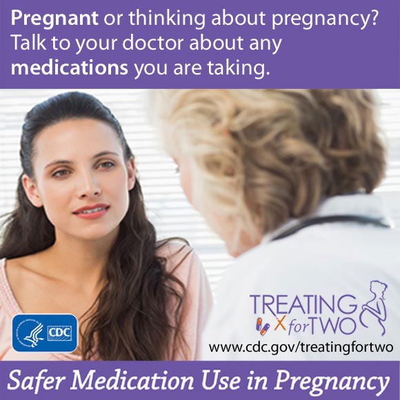 La iniciativa Treating for Two: Safer Medication Use in Pregnancy (Tratamiento para dos: El consumo de medicamentos más seguro durante el embarazo) de los CDC se centra en dotar a las mujeres y a los profesionales a cargo de la atención médica de información confiable y accesible sobre medicamentos consumidos comúnmente durante el embarazo. Esta iniciativa se propone ampliar y acelerar las investigaciones y aportar información actualizada a las mujeres y los profesionales a cargo de la atención médica para que cuenten con suficiente información para tomar decisiones sobre el tratamiento con conocimiento de causa y puedan tomar los medicamentos más seguros para tratar sus condiciones. Puede consultar mayor información en www.cdc.gov/treatingfortwo.