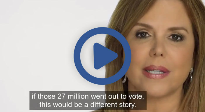 La Presidenta y Directora General de Voto Latino, María Teresa Kumar, es una activista política y figura de influencia entre la comunidad latina. Ella hace hincapié en lo necesaria que es la educación y el compromiso cívico entre los votantes jóvenes y explica el poder desaprovechado del voto latino.