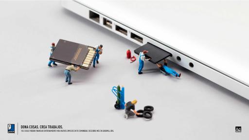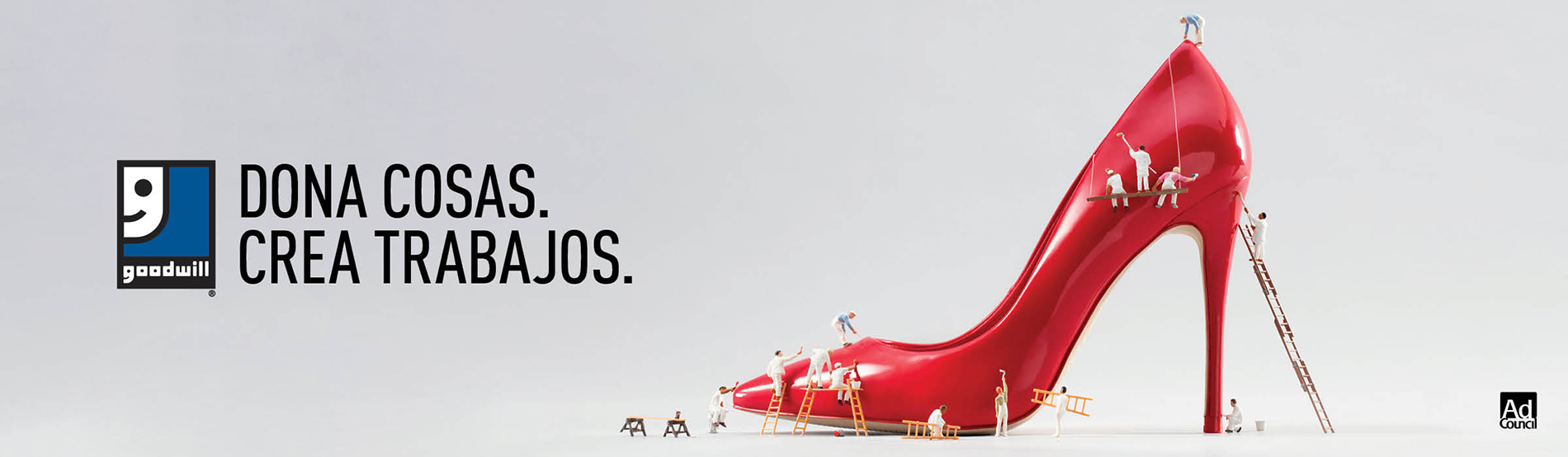 Creada pro bono por VML, una agencia publicitaria líder, la campaña de PSA en los idiomas inglés y español y centrada en los medios digitales presenta metafóricamente la gran cantidad de empleos que pueden encontrarse en objetos donados. La imaginería muestra figuritas en miniatura en acción, realizando diversos trabajos especializados, junto con objetos donados, a tamaño real, que pueden conducir oportunidades de capacitación y colocación laboral. Todos los PSA terminan con el eslogan, "Dona cosas. Crea trabajos." y piden a las audiencias que visiten Goodwill.org para encontrar su centro de donaciones Goodwill más cercano. Además de los recursos digitales y sociales en la primera línea de esta activación, la campaña incluirá materiales televisivos, impresos y en exteriores, que se distribuirán a principios de 2017.