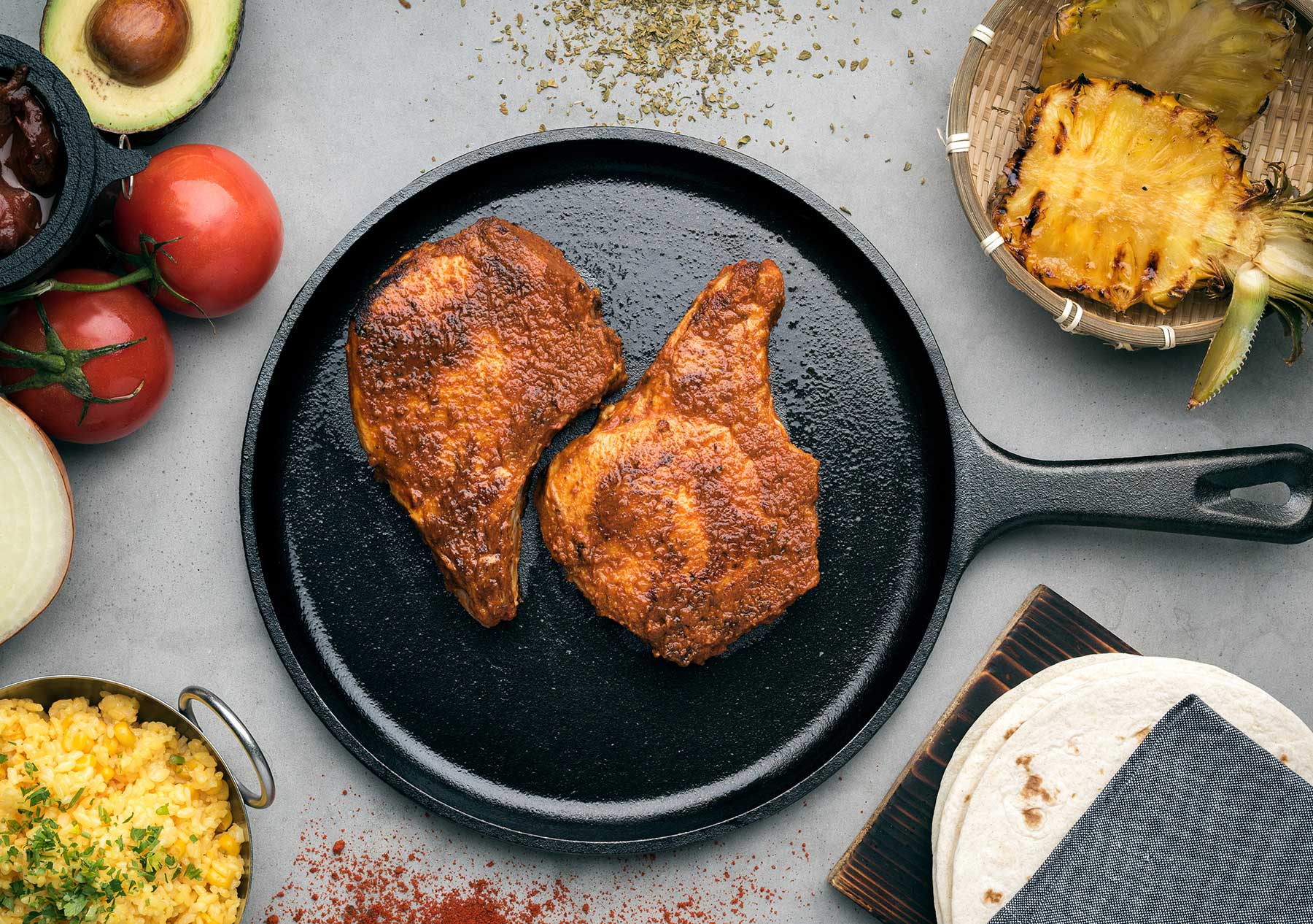 Prueba el delicioso estilo “pastor” en rebanadas finas y crujientes de cerdo. La pimienta de chipotle y la marinada de piña carbonizada logran una combinación picante y dulce que impresionará tanto a tu familia como a tus amigos. Adorna el plato con cebollas verdes y espera que los elogios comiencen a fluir.
