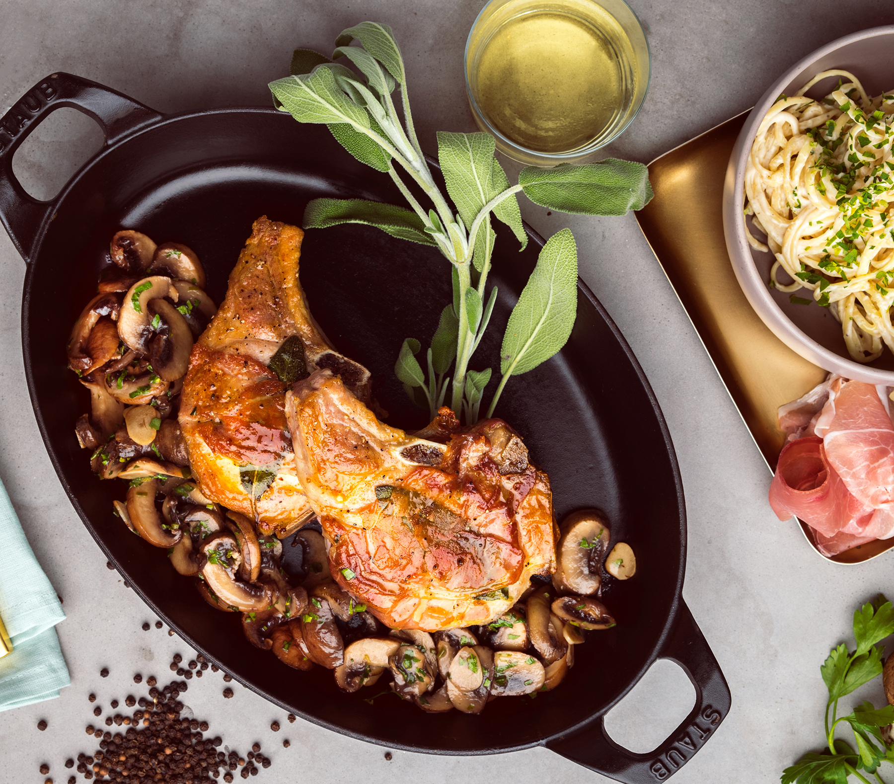 Esta receta fácil y clásica incorpora vino Marsala, salvia y prosciutto como ingredientes clave. Al envolver las chuletas de cerdo en salvia y prosciutto y luego glasearlas con el vino Marsala, este método de cocina simple seguramente te causará grandes elogios.