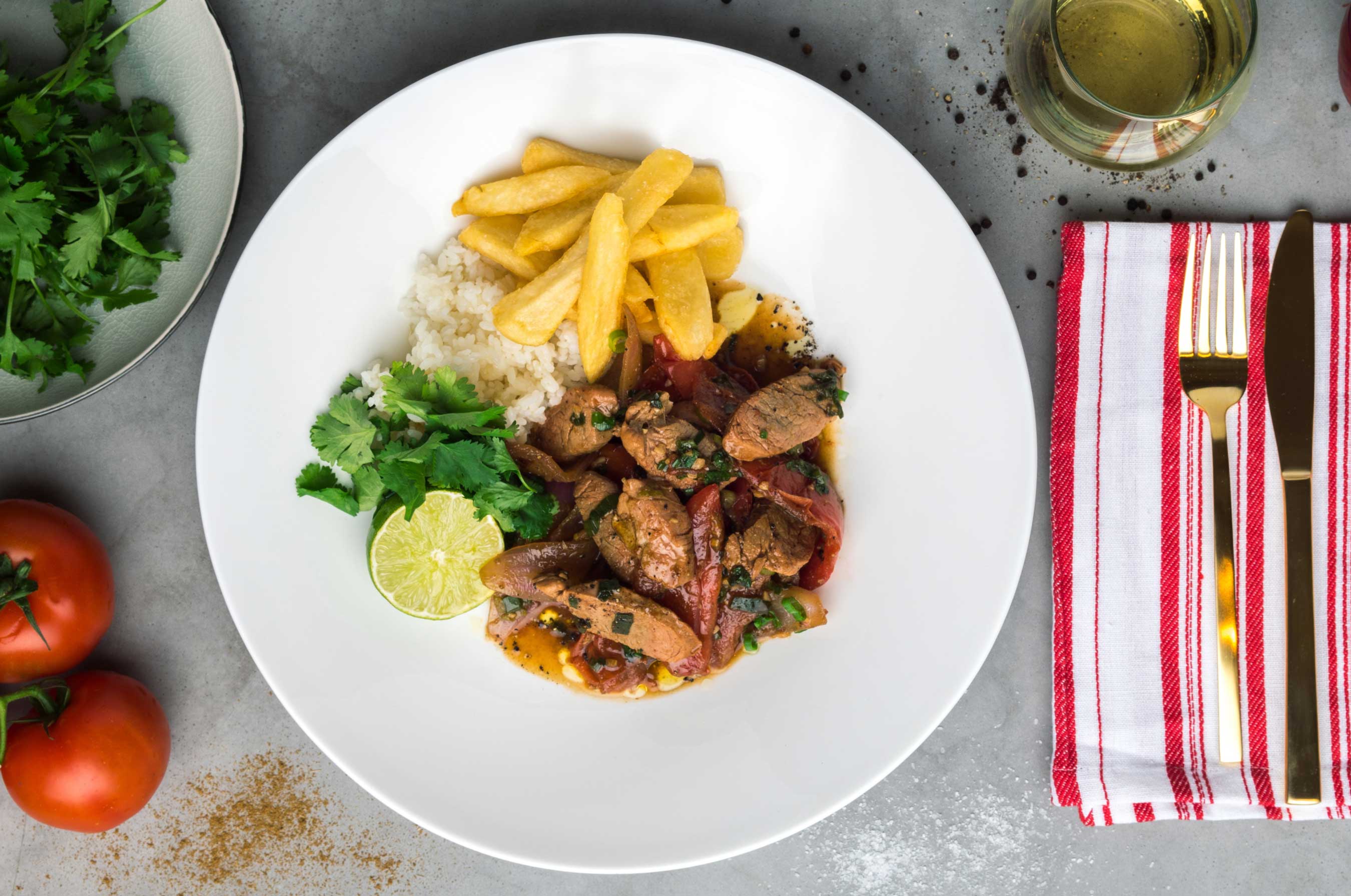 Descubre el sabor del cerdo al wok. Esta vez quisimos probar la carne de cerdo para preparar este plato tradicional. Comienza cortando el lomo de cerdo y luego colócalo en un wok junto con cebollas, tomates y salsa de soja. Cocina hasta que el cerdo se dore, luego sirve con papas fritas y arroz blanco. Prepárate para repetir. Quizás hasta tres veces.