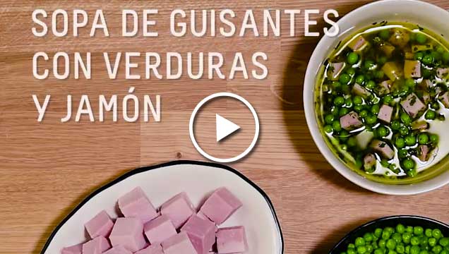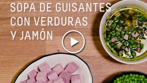 No te confundas a los “huevos verdes con jamón” con esta sopa de guisantes verdes y jamón. Usando la sopa de guisantes como base y el jamón y la salsa de guisantes verdes colocados sobre la parte superior, esta sopa añade sabor (y un toque de color) a la mesa de la cena.