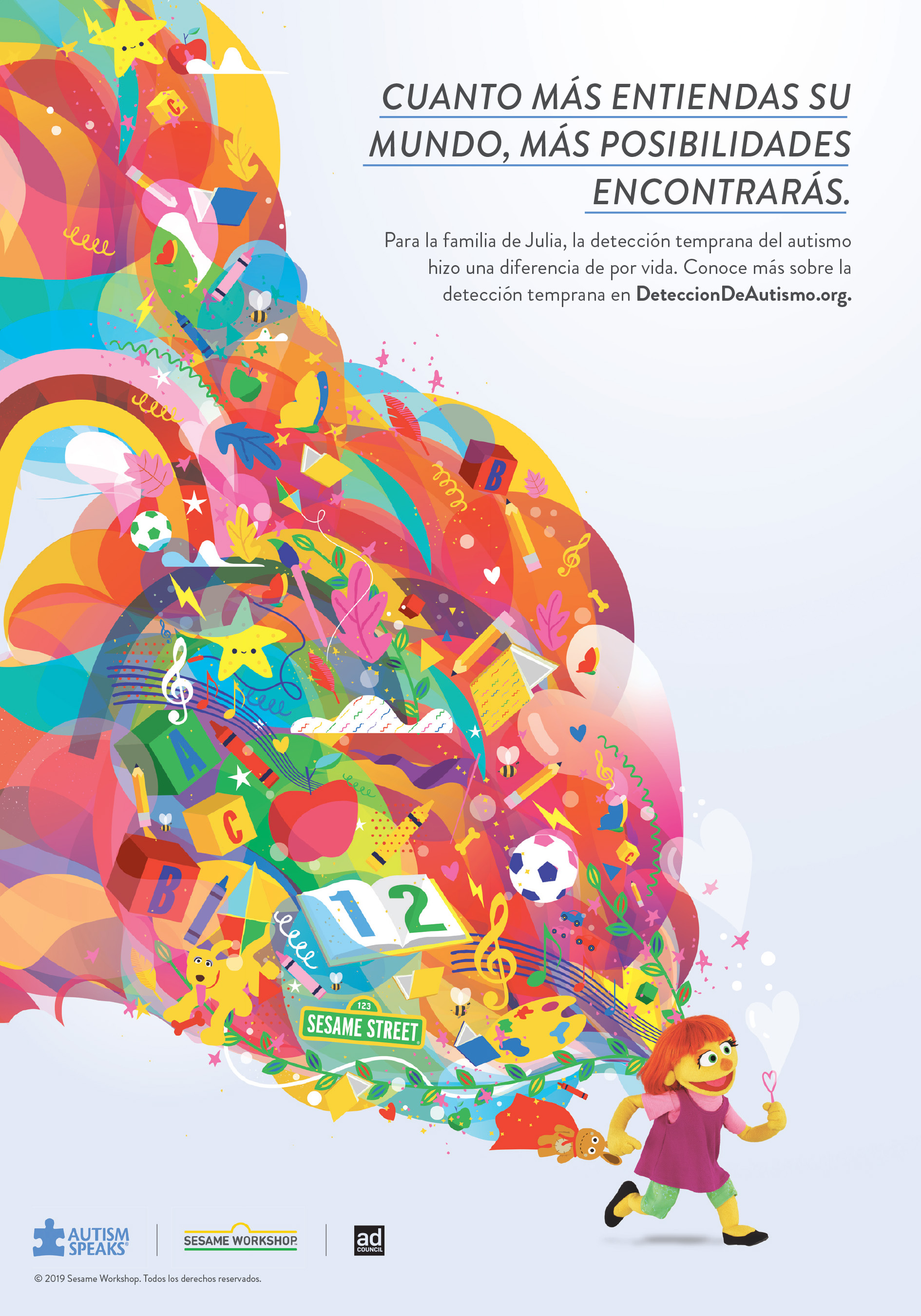 La campaña multimedia, que incluye nuevos anuncios de servicio público en video, surgió de una asociación entre el Ad Council, Autism Speaks y Sesame Workshop. Los protagonistas de la campaña son Julia y su familia y amigos de Sesame Street, que ayudan a los padres a reconocer las señales del autismo y entender la importancia de las pruebas de detección y el diagnóstico temprano, lo que marcará la diferencia en las vidas de los niños con autismo.
