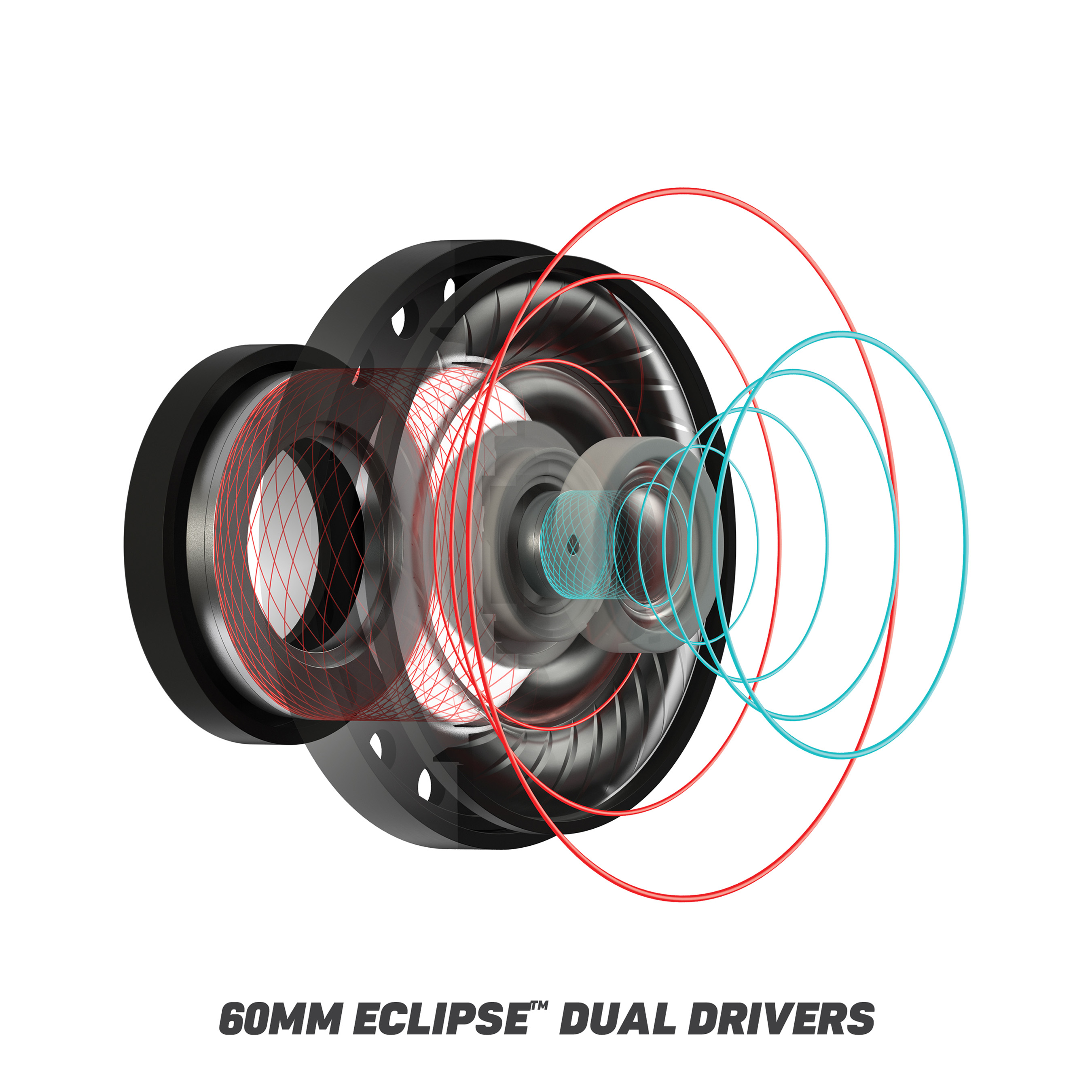 Los drivers dobles Eclipse™ de 60 mm patentados y primeros en su clase de Turtle Beach ofrecen una calidad de sonido sin precedentes en cada frecuencia.
