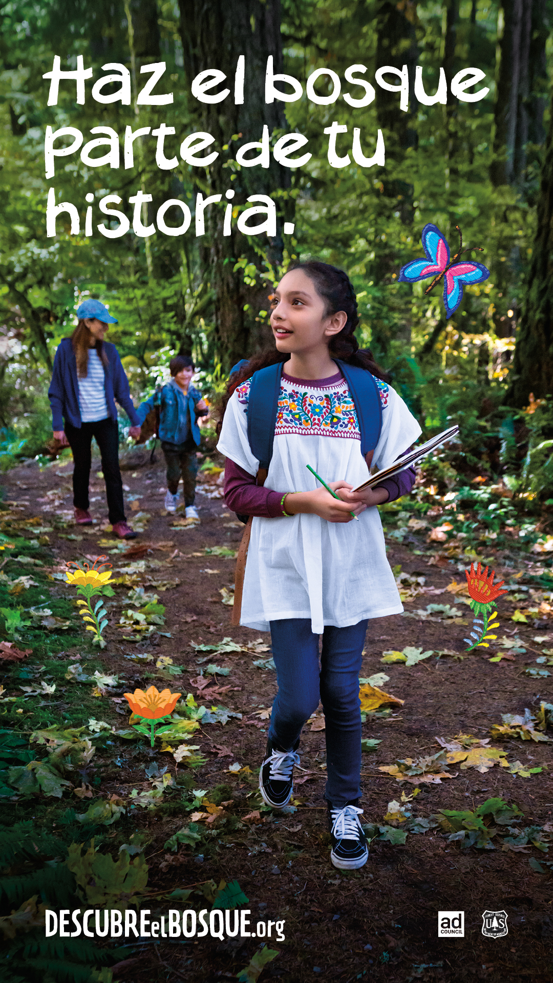"En estos tiempos, nos alegra que tantas familias visiten el entorno exterior y se reconecten entre sí, consigo mismos y con la naturaleza", comentó Tinelle Bustam, directora de Educación para la Conservación, Servicio Forestal y Silvicultura Estatal y Privada del Servicio Forestal del USDA. "Nos sentimos profundamente agradecidos de los artistas narrativos por las representaciones que han hecho en torno a los bosques y la conexión familiar. Esperamos que las familias se involucren e incluyan al bosque como parte de su historia por medio de esta campaña".