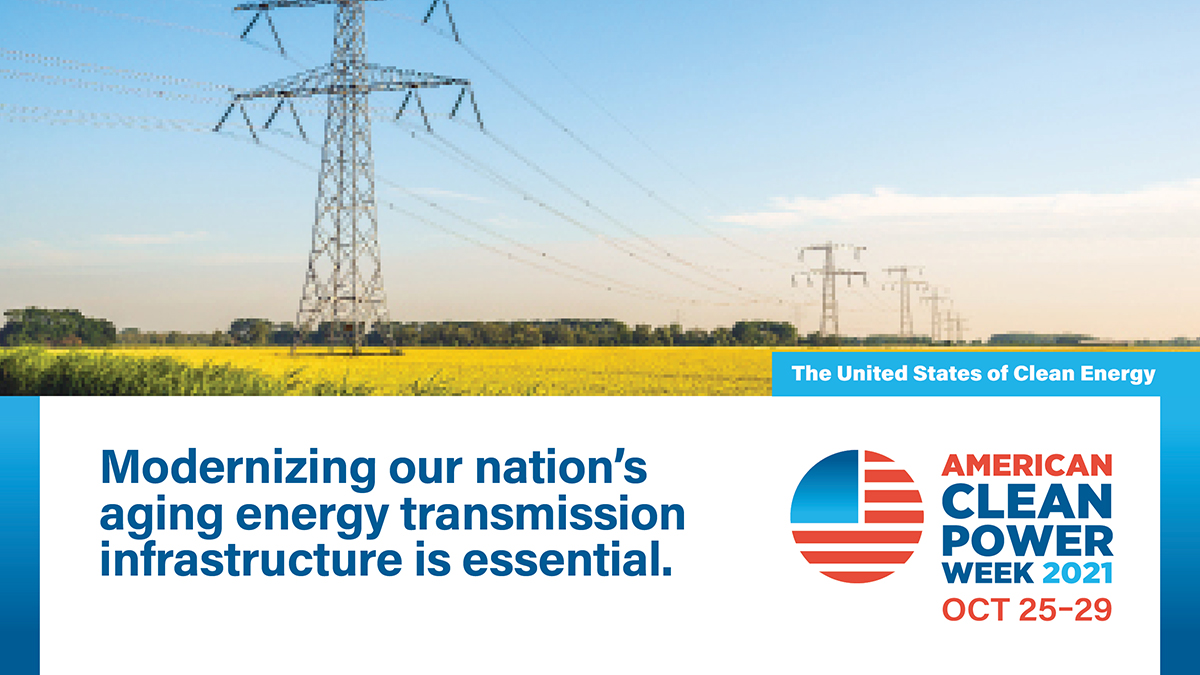 WASHINGTON, 26 de octubre de 2021 -- La American Clean Power Association inauguró hoy su primera "American Clean Power Week", una semana completa dedicada a celebrar las formas en que la energía limpia está construyendo un futuro mejor para los Estados Unidos. Destacando las tecnologías de energía limpia en todo el país, el tema de la semana es "Los Estados Unidos de la energía limpia", que destaca las tecnologías de energía limpia a través de numerosos eventos en vivo y virtuales con funcionarios públicos, líderes de la industria y el público de todo el país.