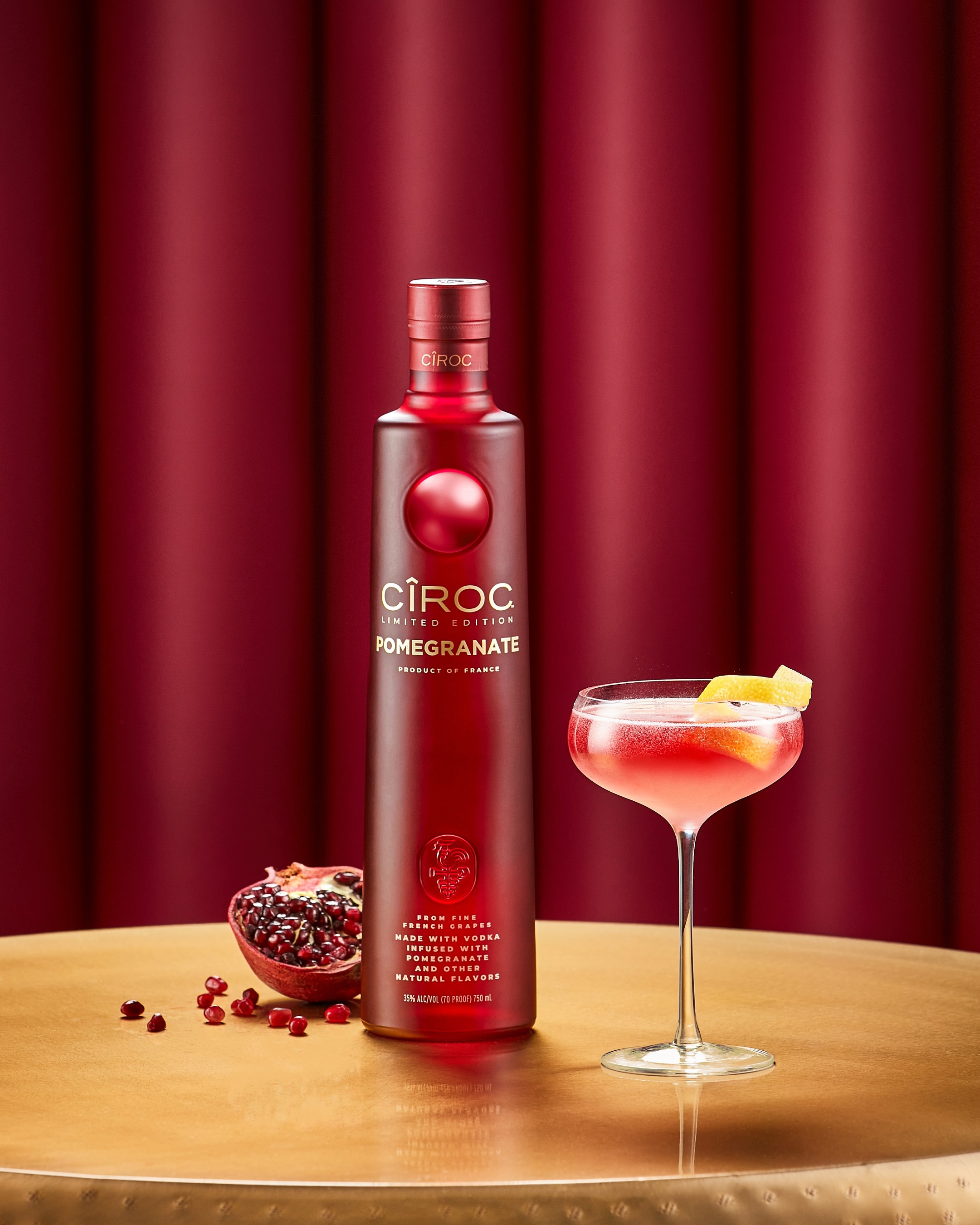 CÎROC Pomegranate es un licor robusto hecho de vodka destilado de uvas francesas infundido con granada y otros sabores naturales. Con notas jugosas de frutos rojos y fresas, y explosiones de sabores dulces y frutales de granada, que culmina de manera suave. Como toque final, el licor viene en una botella color borgoña que se asemeja a los tonos de las joyas de la temporada con letras doradas que seguramente causará una gran impresión durante la temporada festiva.