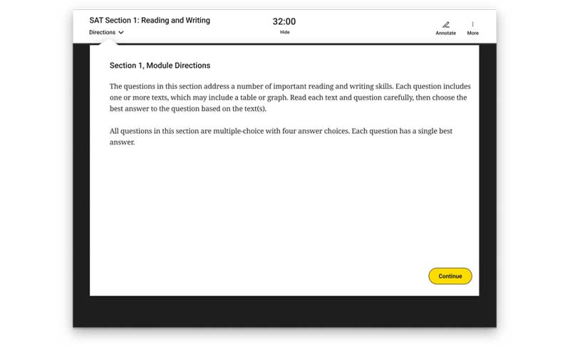 "El SAT digital será más fácil de tomar, más fácil de administrar y más relevante", dijo Priscilla Rodríguez, vicepresidenta de Evaluaciones de Preparación Universitaria en College Board. "No estamos simplemente poniendo el SAT actual en una plataforma digital, estamos aprovechando al máximo la oportunidad de administrar un examen digital. Con las contribuciones de educadores y estudiantes, nos estamos adaptando para asegurarnos de que satisfacemos las necesidades que surjan”.