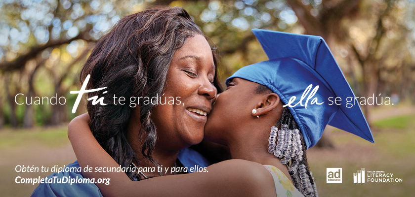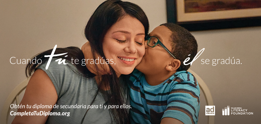 NUEVA YORK, 18 de mayo de 2022 /PRNewswire-HISPANIC PR WIRE/ -- El Dollar General Literacy Foundation (DGLF) y El Ad Council publican hoy nuevos anuncios de servicio público (PSA) para atraer la atención de adultos sin diploma de escuela secundaria. Como parte de su campaña de larga data Finish Your Diploma, la nueva campaña "When You Graduate, They Graduate" (Cuando tú te gradúas, ellos se gradúan) muestra que, junto con mejores oportunidades laborales y mayores ingresos, la alfabetización de los padres y la finalización de la escuela secundaria pueden tener un efecto dominó positivo en la familia. La campaña fue desarrollada pro bono por la agencia de publicidad creativa BBH USA.