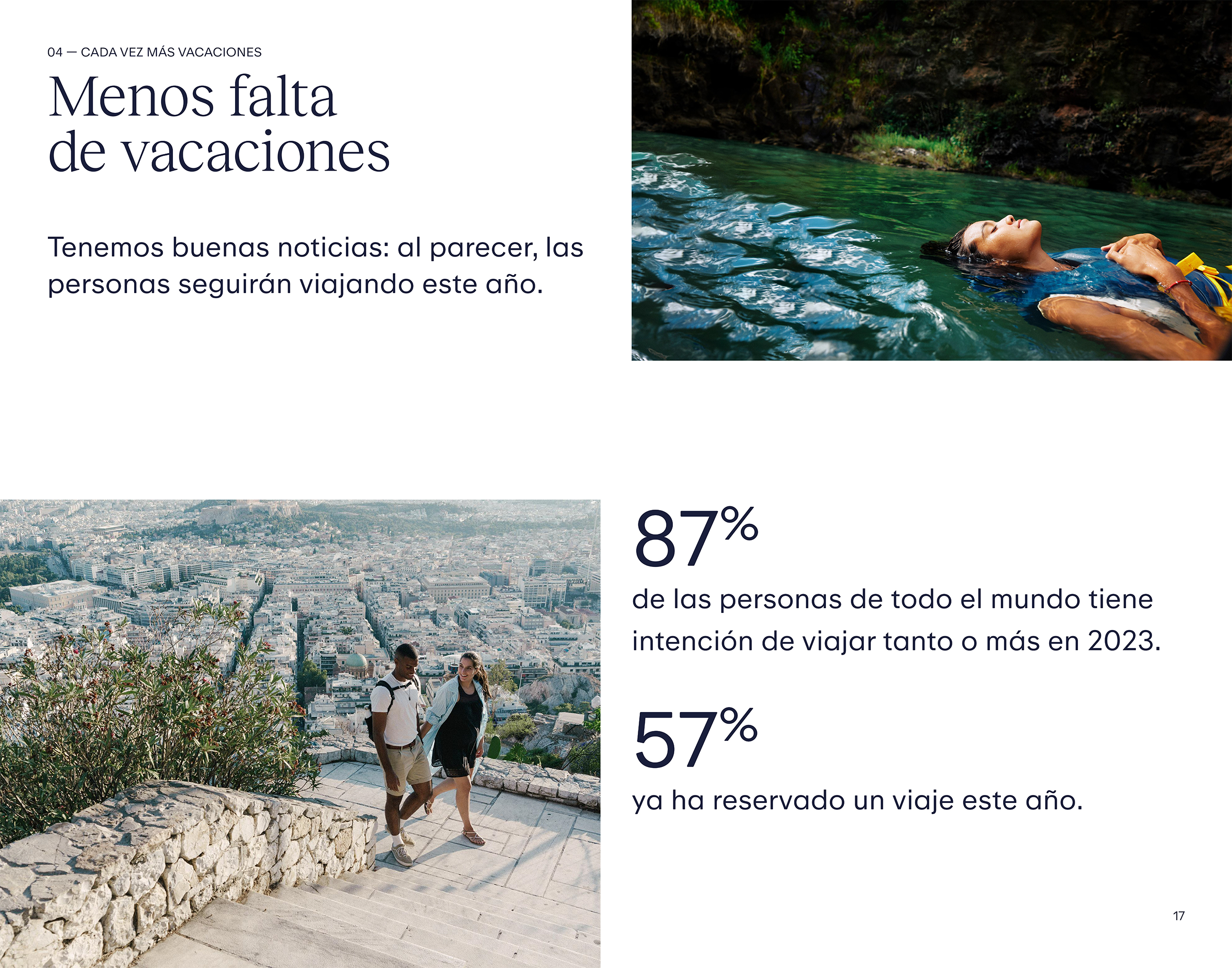 Activos visuales: Imágenes de destinos, el informe de Privación de Vacaciones a nivel global e infografías disponibles para descargar.