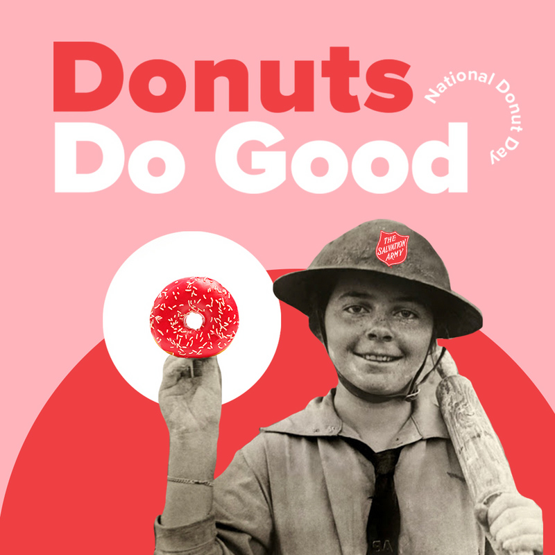 ALEXANDRIA, Virginia, 1 de junio de 2023 -- El Día Nacional de la Dona se celebra hace 85 años gracias al mayor proveedor no gubernamental de servicios sociales del país. Es posible que algunas personas no sepan que cuando comen una dona el primer viernes de junio de cada año, se trata de algo más que una simple fiesta de la comida: es un reconocimiento a los voluntarios desinteresados que asisten a las personas necesitadas. Este dulce día se estableció en 1938 para honrar a los "Donut Lassies" del Ejército de Salvación, que hicieron historia asistiendo a miles de soldados en el frente durante la Primera Guerra Mundial. Hoy en día, los oficiales, el personal y los voluntarios del Ejército de Salvación ayudan a asistir a las personas necesitadas en casi todos los códigos postales de Estados Unidos.