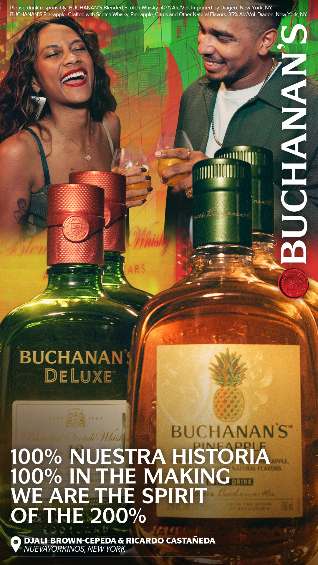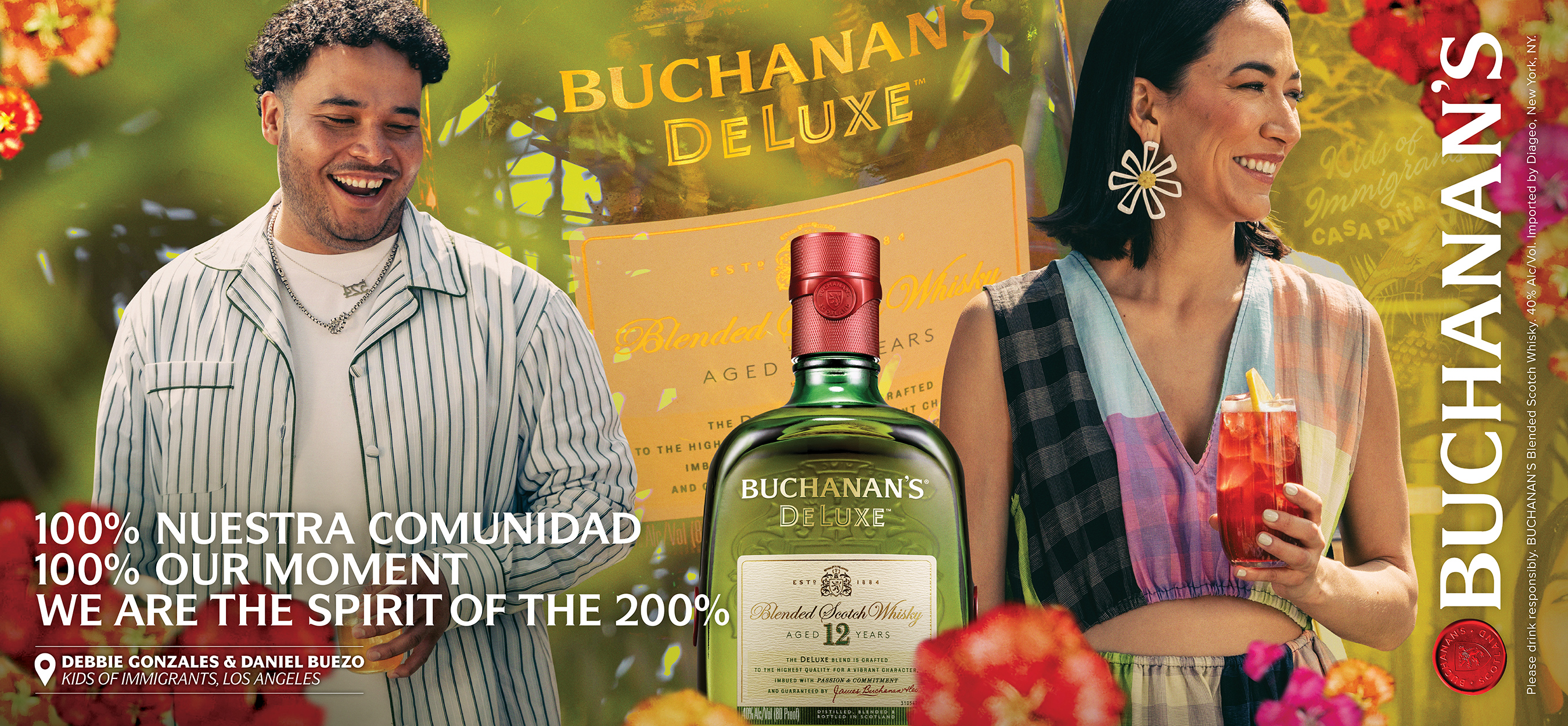 NUEVA YORK, 6 de noviembre de 2023: Buchanan's Blended Scotch Whisky se enorgullece de presentar la última edición de su campaña publicitaria a nivel nacional “We are the Spirit of the 200%,” que une y honra a los 200%ers: aquellos que se identifican como 100% hispanos y 100% americanos, y el mundo más audaz y sabroso que crean. Con frecuencia, los hispanoamericanos sienten como si fueran ni de aquí, ni de allá o que tienen que elegir un lado de su identidad. La campaña brinda por aquellos que celebran el ser de aquí y de allá, honrando su dualidad cultural.
