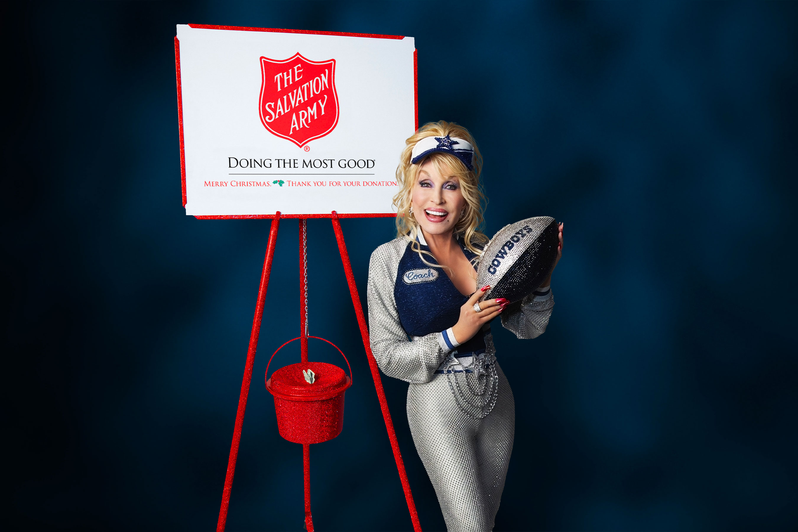 "¡Vaya! Es un honor poder dar comienzo a la Red Kettle Campaign de The Salvation Army con el espectáculo del descanso del partido de los Dallas Cowboys de Acción de Gracias", declaró Parton. "Los Red Kettles son desde hace tiempo un símbolo de esperanza para nuestros amigos y vecinos que atraviesan tiempos difíciles. Mi objetivo es animar a todos los que puedan a donar y apoyar a sus vecinos necesitados. Cada pequeño acto de generosidad ayuda, y juntos, todos podemos amar a nuestros vecinos estas fiestas y más allá".