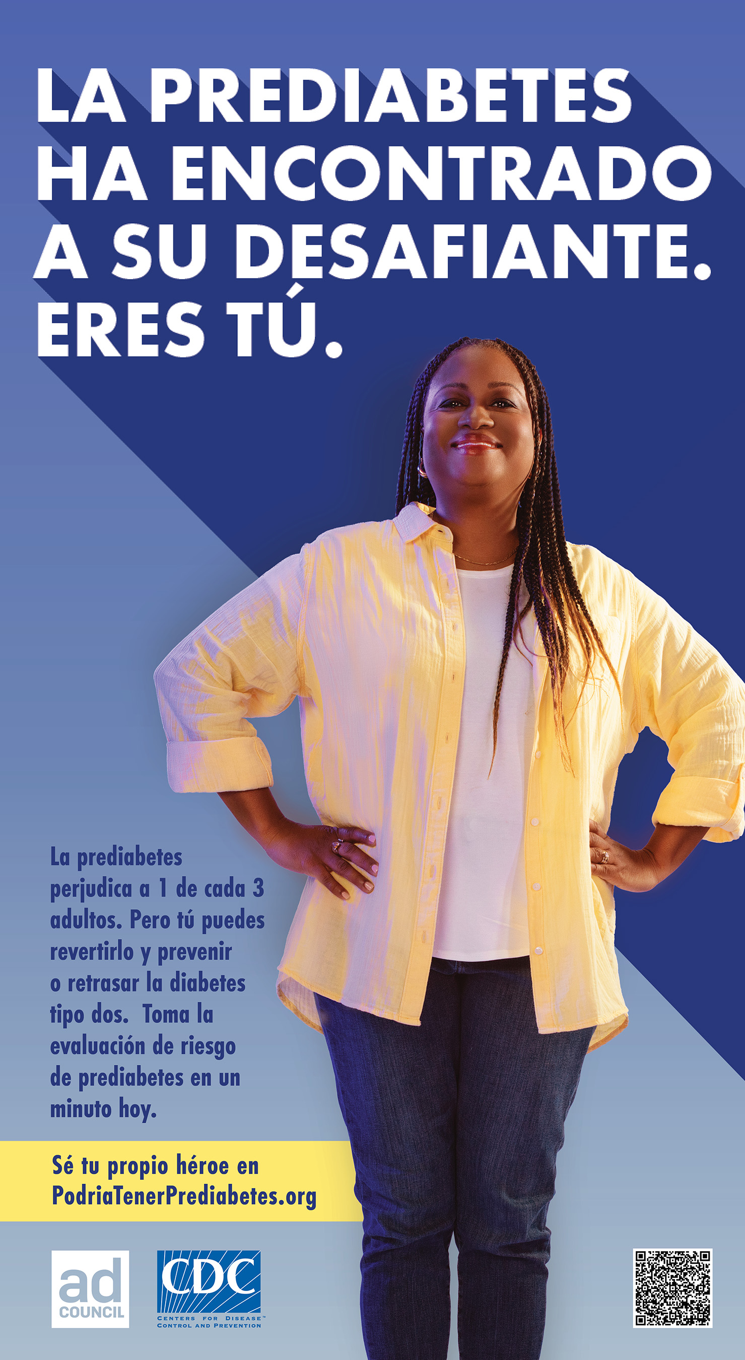 Más de 1 de cada 3 adultos —aproximadamente 98 millones de personas en los Estados Unidos— tienen prediabetes y el 81 % de ellos no sabe que la tiene. Los CDC y el Ad Council lanzan hoy nuevos anuncios de servicio público como parte de la iniciativa en curso llamada “¿Podría tener prediabetes?” para animar a las personas a averiguar su riesgo de tener prediabetes.