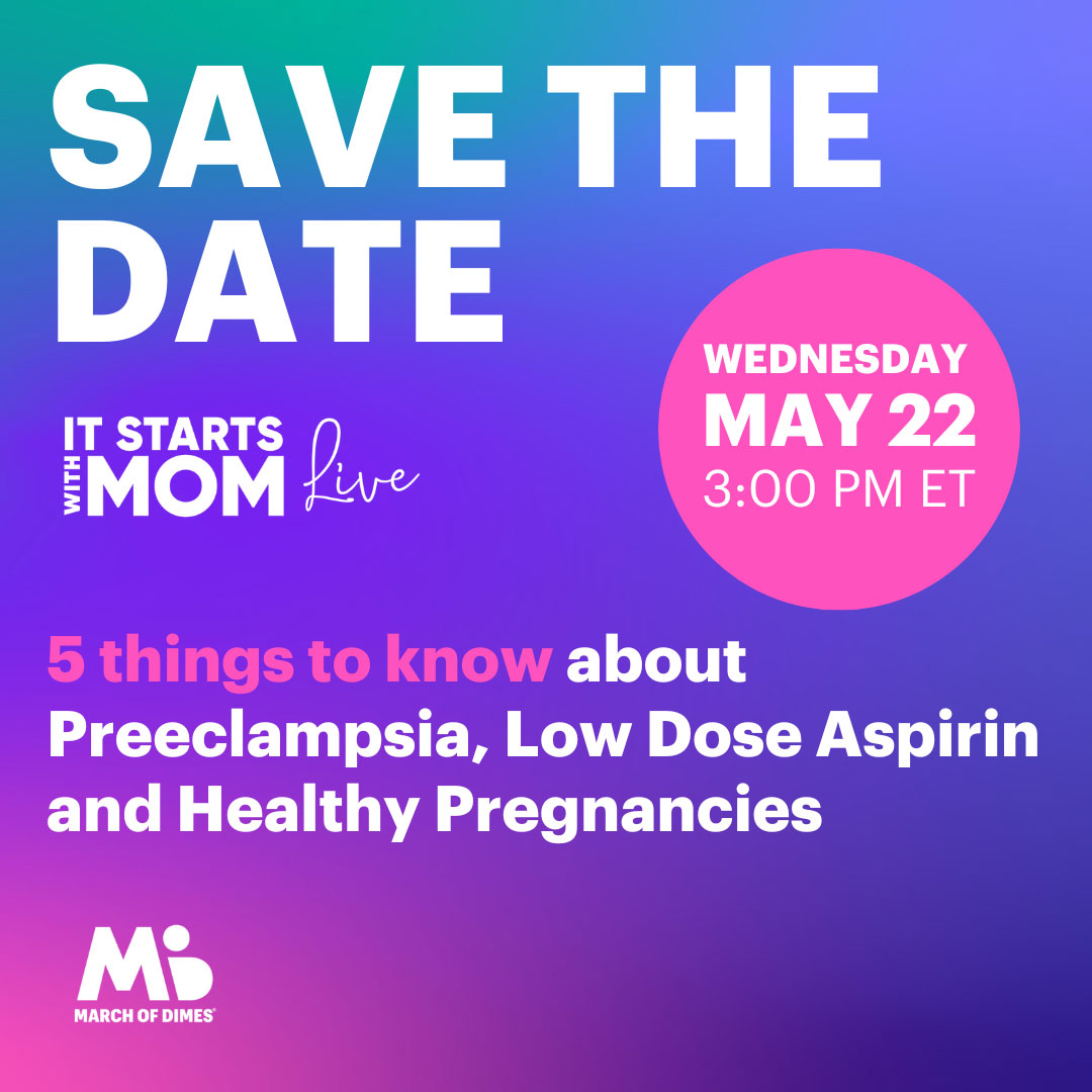 March of Dimes utilizará su plataforma It Starts With Mom, apoyada por socios, para educar a familias y proveedores durante todo el año sobre temas de salud materna, como la aspirina de dosis baja, las doulas, las vacunas, la salud mental materna y el posparto, como parte de la misión de la organización sin ánimo de lucro de mejorar los resultados de la salud materna e infantil para todas las madres y bebés.