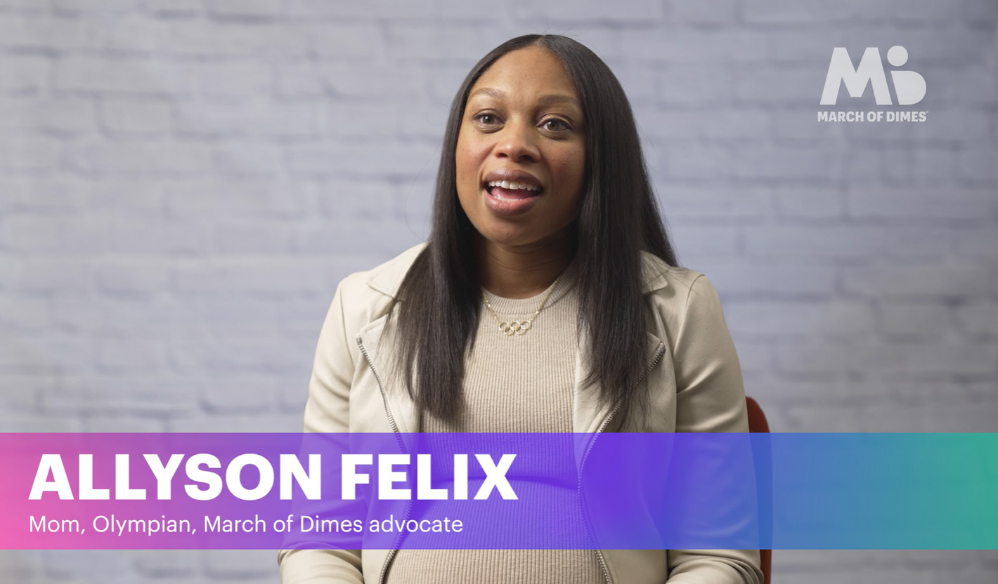 "Como madre a la que diagnosticaron preeclampsia en mi primer embarazo y que tuvo que dar a luz por cesárea de urgencia a las 32 semanas, entiendo la importancia de la salud materna, especialmente para las mujeres de color", dijo Allyson Felix, atleta olímpica que ha batido récords y miembro del Celebrity Advocate Council de March of Dimes. "Durante mi segundo embarazo, sabía que ya tenía un alto riesgo de volver a desarrollar preeclampsia y, gracias a las conversaciones con mi proveedor, que comprendió mi miedo y me escuchó, decidimos que una dosis baja de aspirina era la intervención adecuada para mí y mi bebé. Mi segundo parto y alumbramiento fueron sanos, hermosos y poderosos, y por eso asociarme con March of Dimes para educar a las familias sobre los beneficios de las dosis bajas de aspirina es profundamente personal e importante para mí".