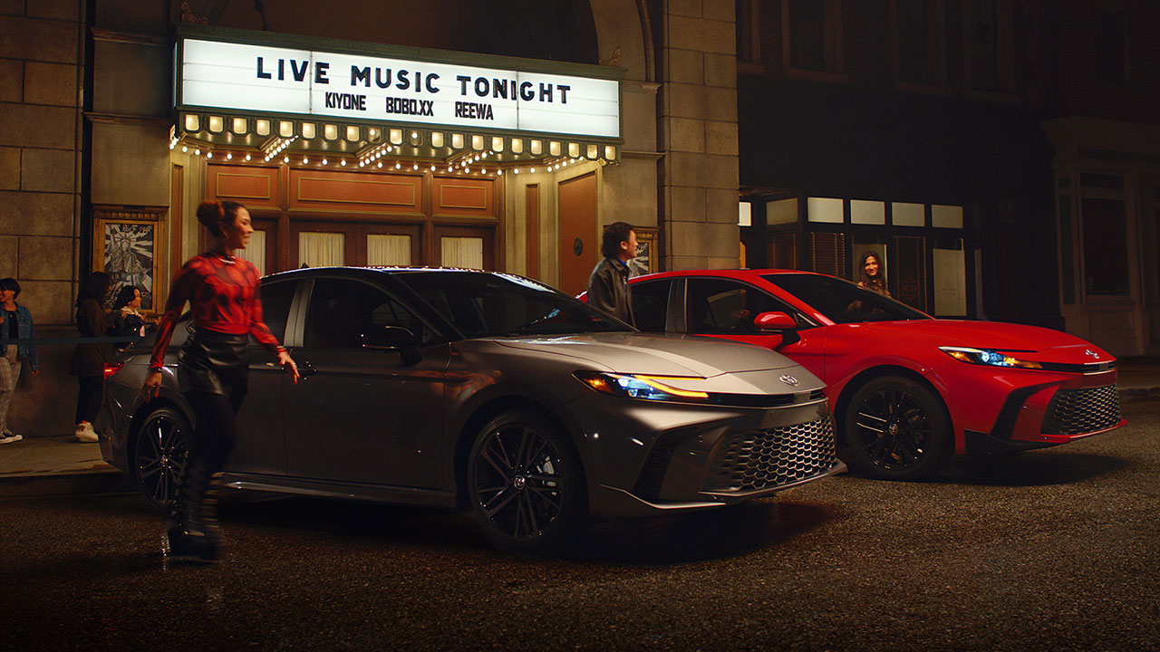 Saatchi & Saatchi creó dos anuncios de 30 segundos titulados "Limitless Vibes" y "Groove Thing", dirigidos por TWIN (el dúo formado por Josh y Jonathan Baker). En "Limitless Vibes", tres amigos discuten opciones para salir por la noche mientras su Camry 2025 se multiplica por tres. Cada Camry se desttaca por una "vibra" diferente: desde una sala de juegos y un espectáculo de comedia hasta una galería de arte, y finalmente el trío sale a comer tacos. "Groove Thing" presenta a un conductor del totalmente nuevo Camry que ilumina mágicamente una calle del centro de la ciudad a su paso, moviendo la cabeza al ritmo de la música. Una hipnotizante ola de luz crece y se balancea al ritmo de la energía de una ciudad que baila al ritmo de la vibra innegable del nuevo Camry.