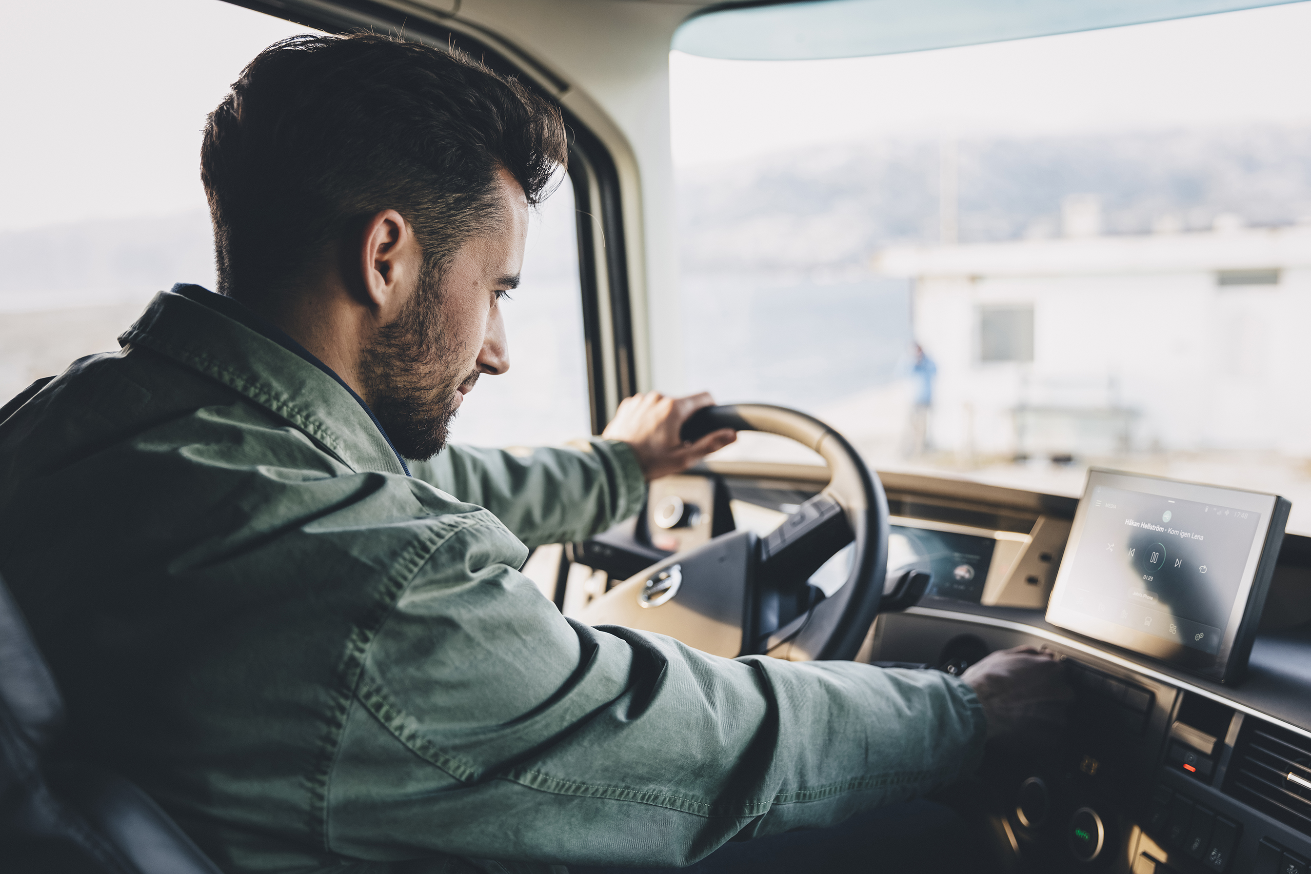 Chaufførens område har nu en helt ny grænseflade til information og kommunikation, der har til formål at gøre det lettere at få et overblik over og styre de forskellige funktioner, hvilket skaber mindre stress og distraktion. Instrumentdisplayet er fuldt ud digitalt med en 12" skærm, der gør det nemt for chaufføren at vælge de nødvendige oplysninger til enhver tid. Inden for let rækkevidde af chaufføren er der et supplerende 9" sidedisplay til rådighed, der leverer infotainment, navigation, transportoplysninger og kameraovervågning. Funktionerne kan styres via knapper på rattet, via stemmestyring eller via touchscreen og displayets kontrolpanel.